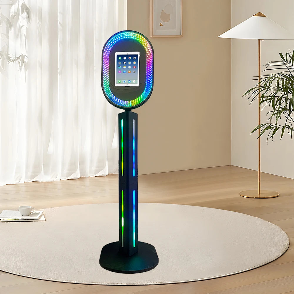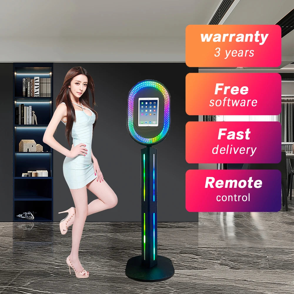【DURABLE & PORTABLE】This portable ipad selfie station booth is made of sheet metal material+Glass Panel, which is durable, lightweight, and portable,ensuring a long service life. The whole is designed with a detachable structure and equipped with a high-quality flight case, so there is no need to worry about the product being damaged by collision and extrusion during long-distance transportation.