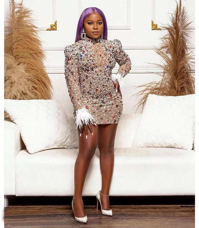 2022 Fashion Women Mesh Crystals Sexy Short Dress Ladies Evening Party