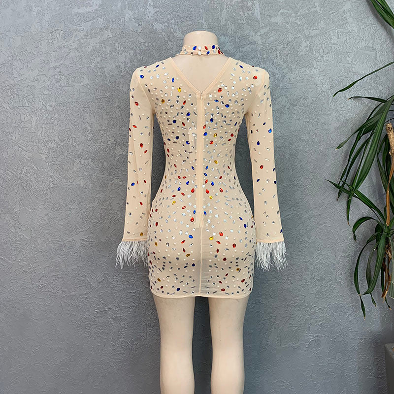 Sleeve Style: RegularSilhouette: SheathNeckline: O-NeckDecoration: DiamondsStyle: Sexy & ClubDresses Length: Above Knee, MiniMaterial: MeshOrigin: CN(Origin)CN: GuangdongType: RegularSeason:...