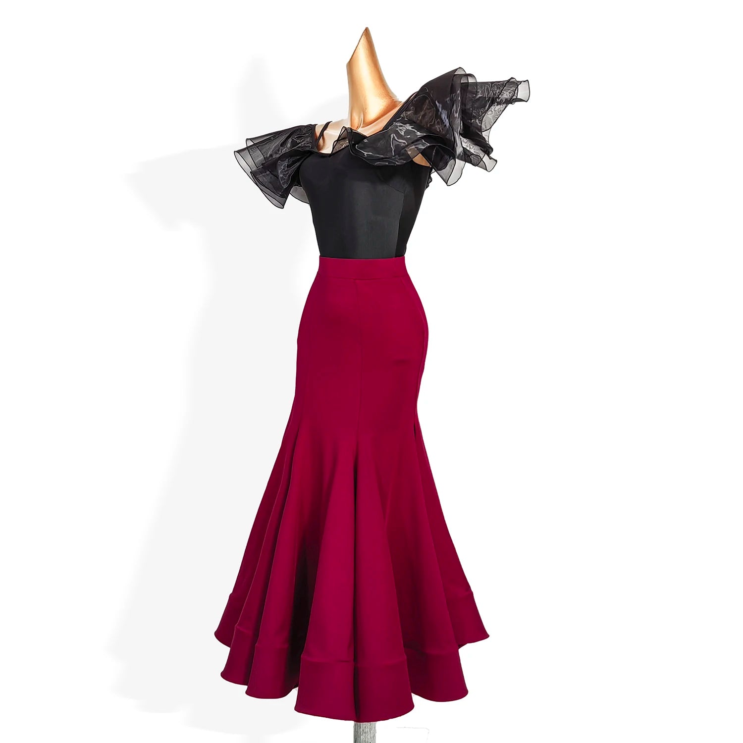 CACARE Customized Skirt Ballroom Waltz Dance Skirt for Women Fringe Salsa Latin Ballroom Dance Competition Skirt