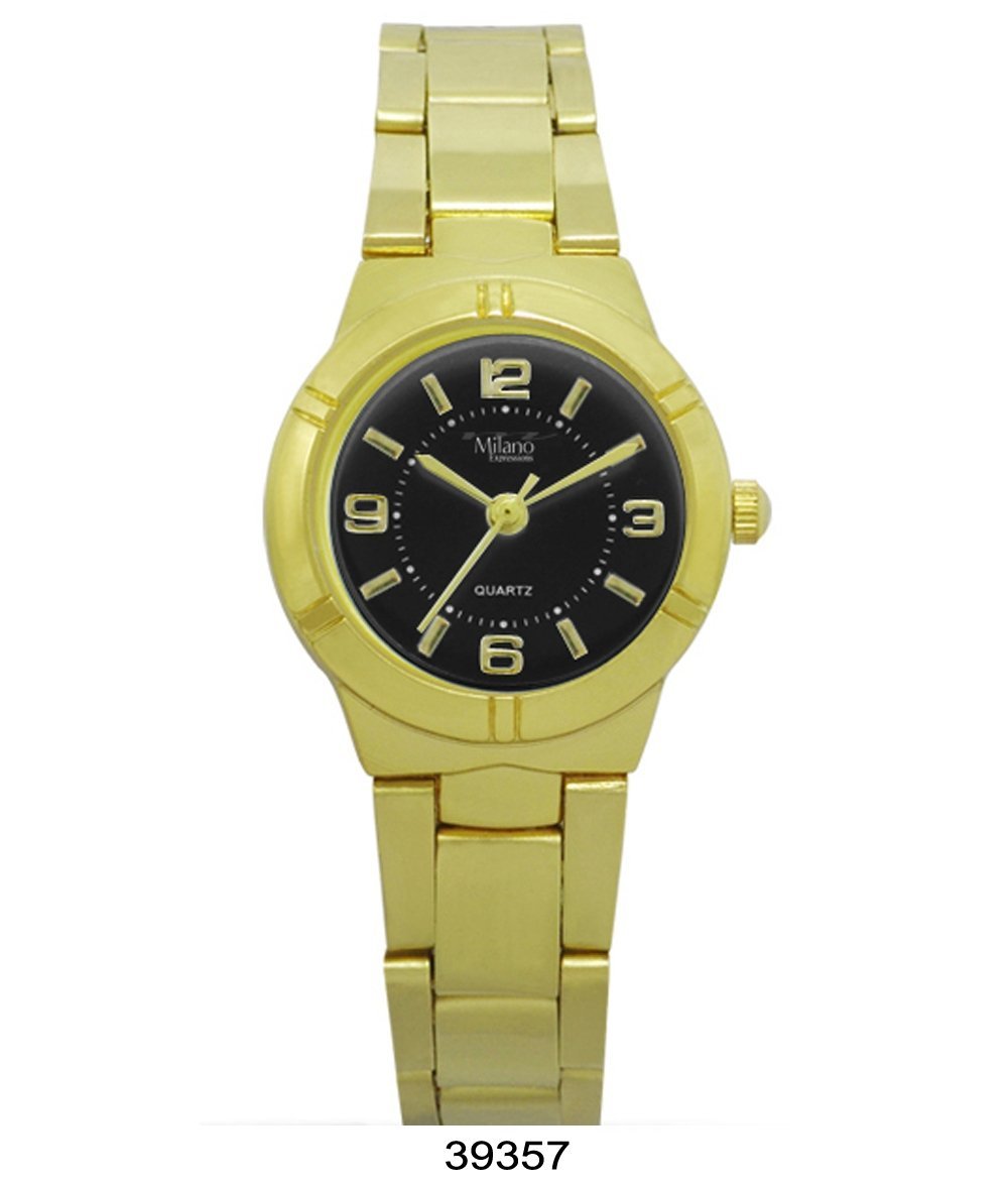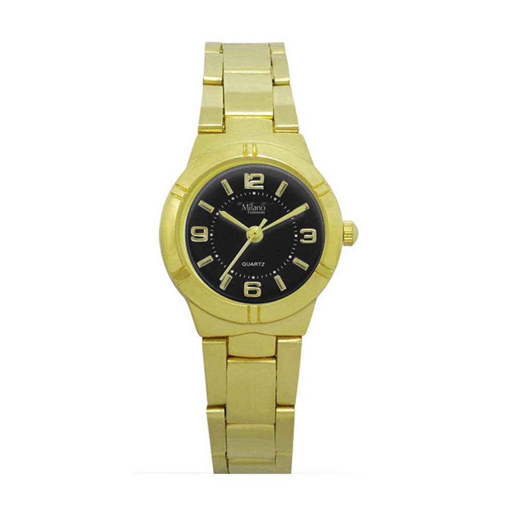 Milano Expressions Gold Metal Band Watch with Gold Case Black Dial