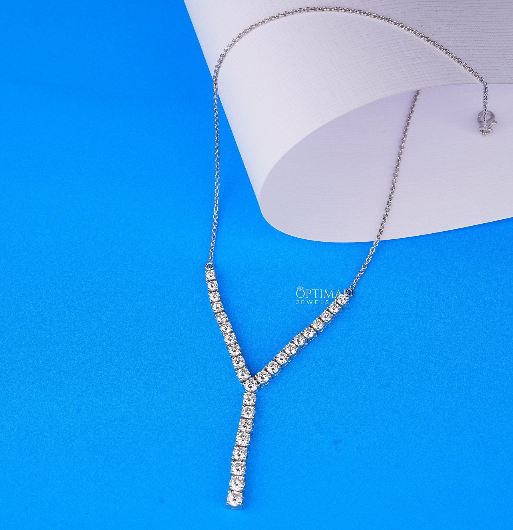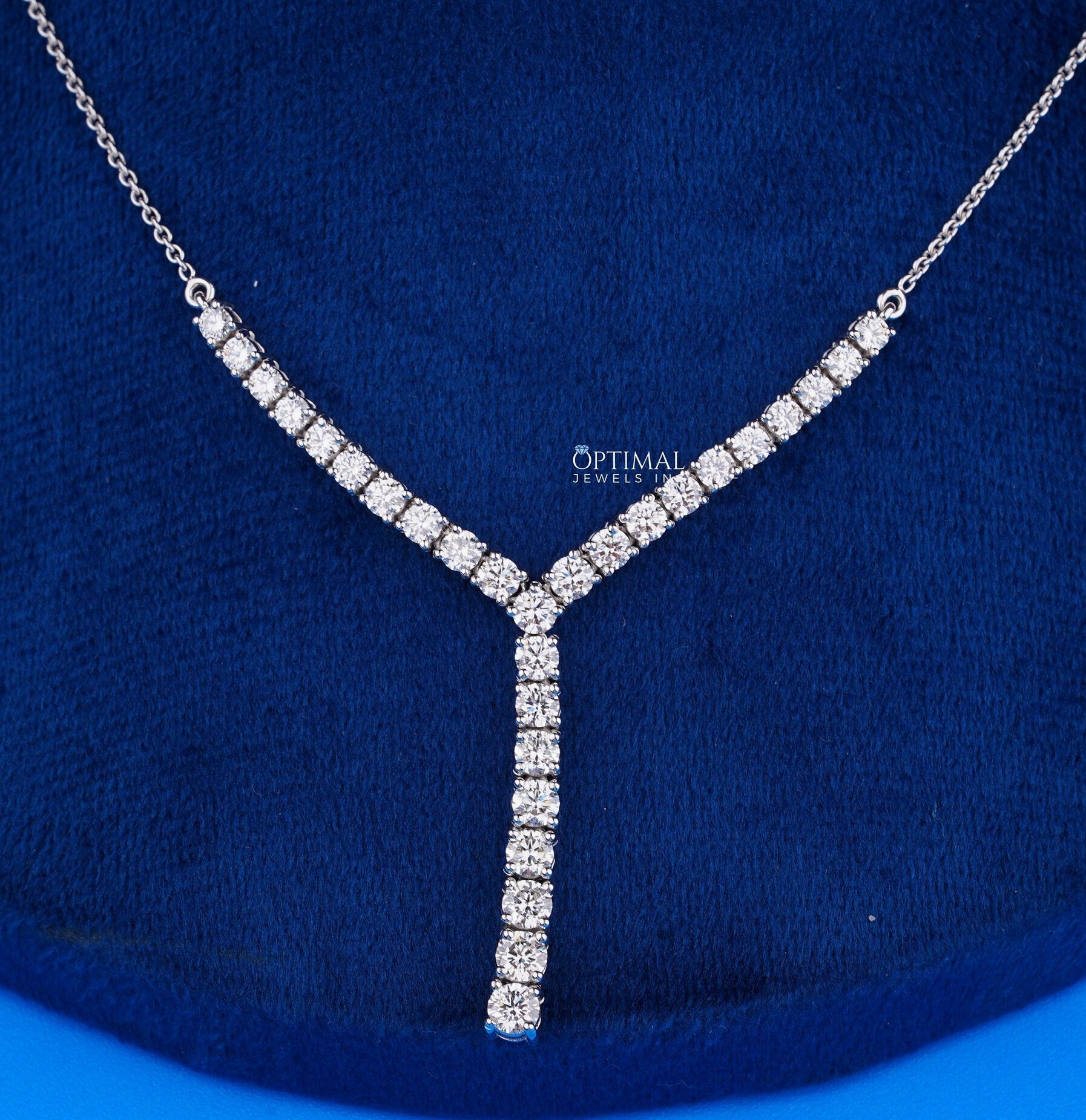 Antique Y-Shaped Diamond Tennis Necklace, 3.67 Ctw Round Cut Lab-Grown Diamonds, White Gold Chain Necklace, Elegant Jewelry Piece for Women