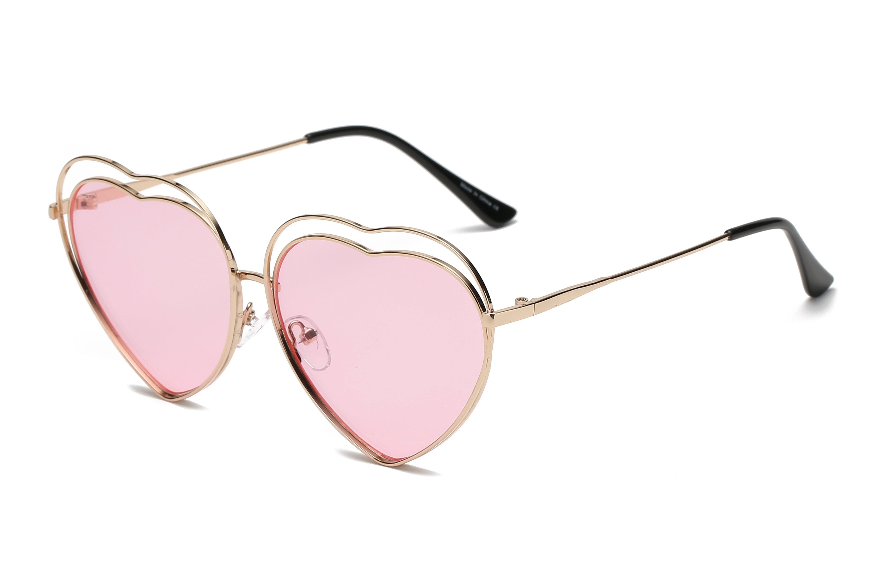 Women Metal Funky Hispter Heart Shape Mirrored UV Protection Fashion Sunglasses