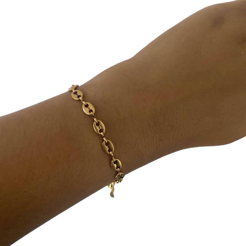 Our Ava bracelet is a feminine matte gold statement piece with rounded links.