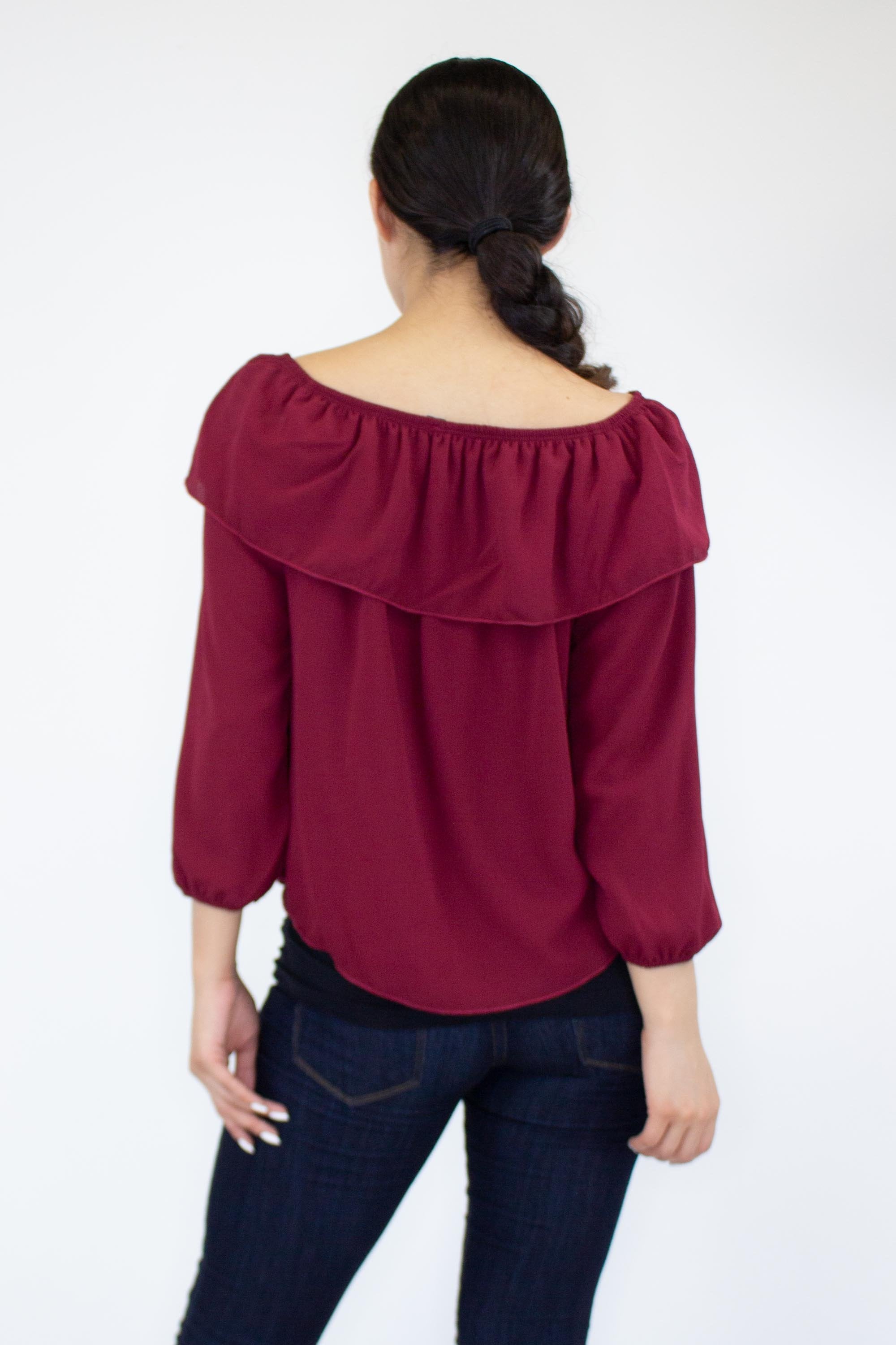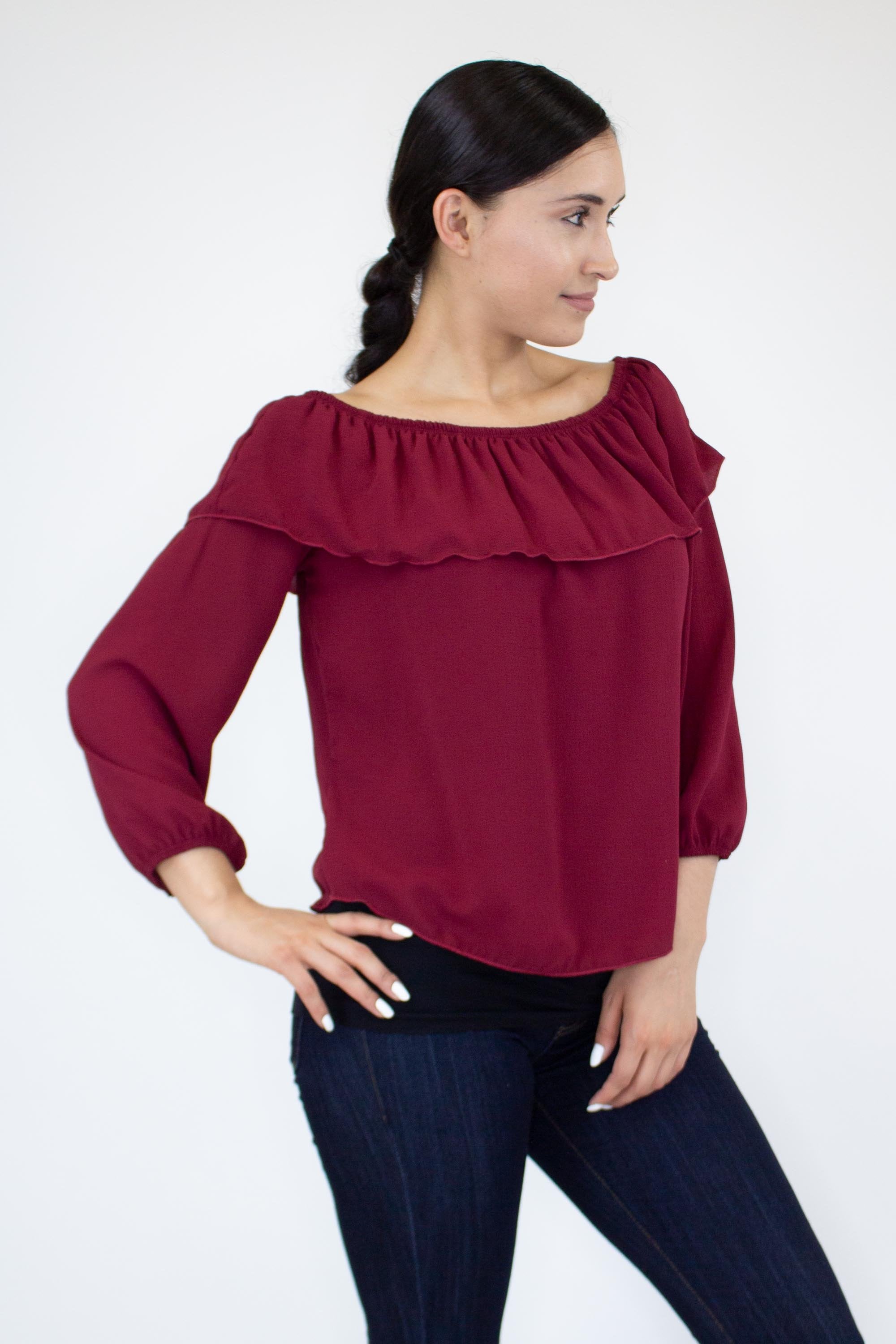 PRODUCT DETAILS Off shoulder Balloon sleeve 3/4 sleeve Ruffled top Comfortable fit Casual style  Material: 100% POLY ...