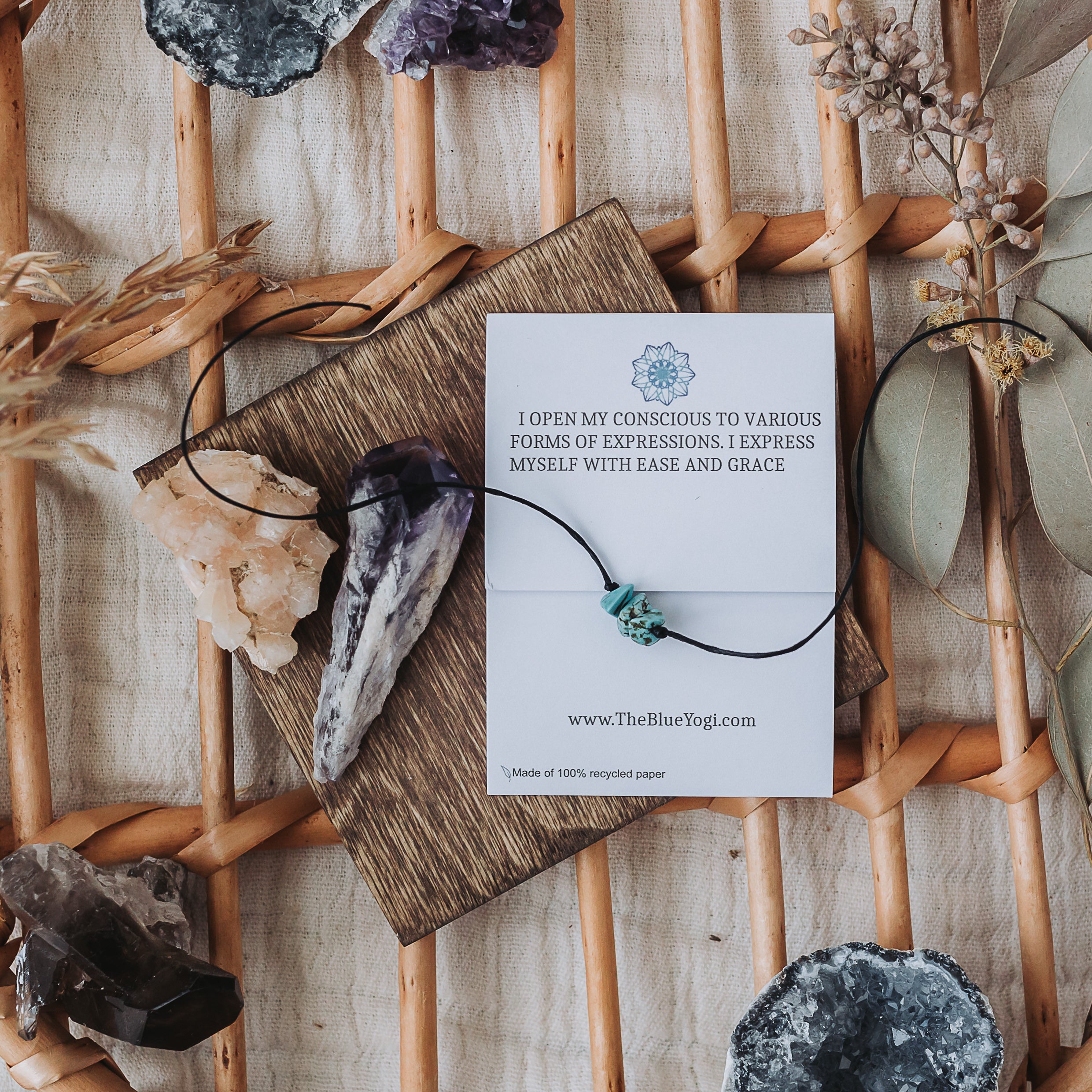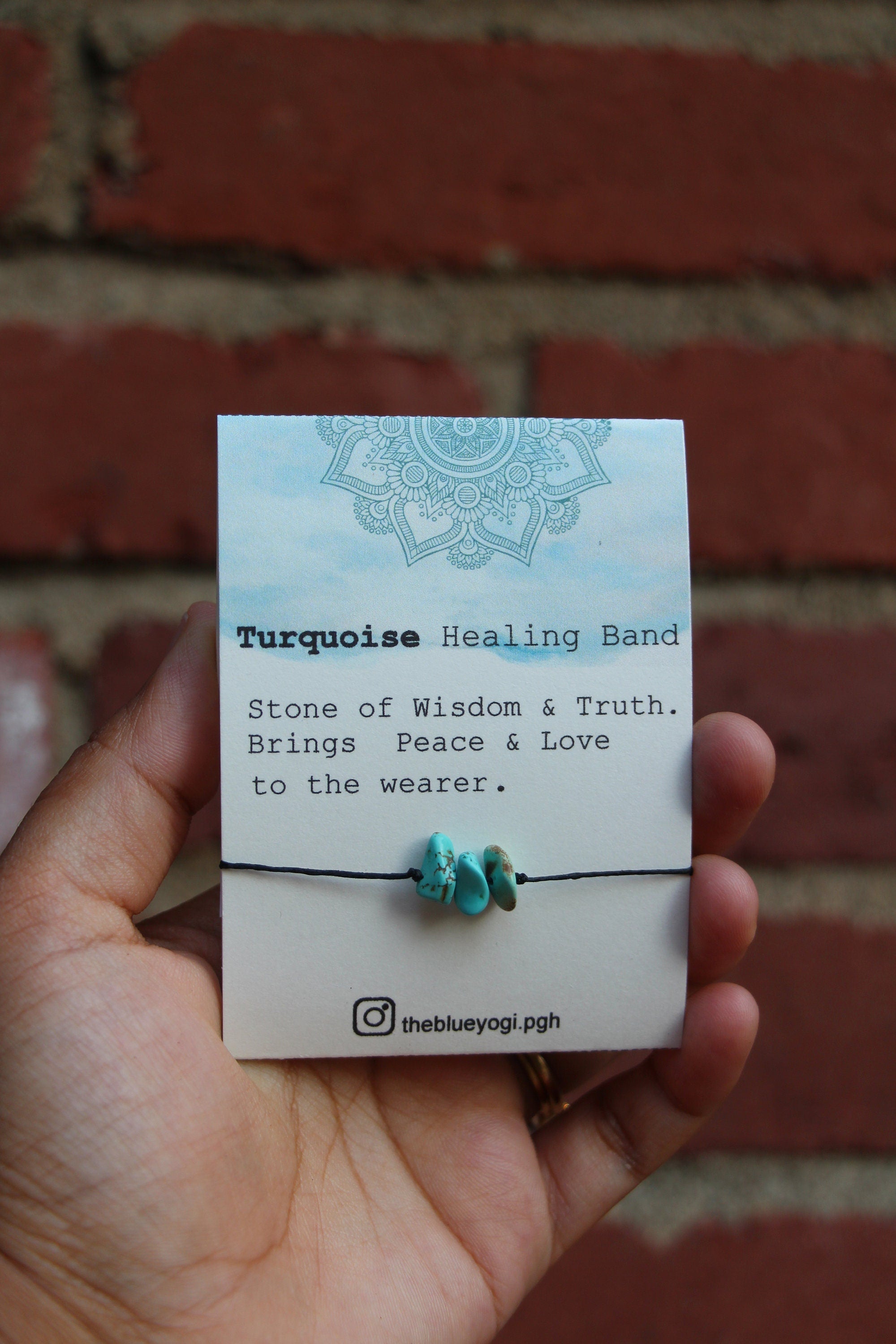 Casual, Boho, everyday gemstone Healing band. Each Bracelet is 12” long and has tie closure. Can be used as an anklet or bracelet. Made of Natural Turquoise. The healing bands are meant to be worn 24x7. It is safe to wear while showering, sleeping ’t contain any metals just natural gemstones and cord. The bands are simple, light weight and with tie closure so it is safe to wear it all the time and by all ages. Tie the bracelet with a couple of tight knots, snip of the extra cord. Each Bracelet comes with a card with a watercolor Mandala art and healing properties of the crystal (as shown in photo) Healing with Turquoise Turquoise balances and aligns all the chakras, stabilising mood swings and instilling inner calm. It is excellent for depression and exhaustion, it also has the power to prevent panic attacks. Turquoise promotes self-realisation and assists creative problem solving.
