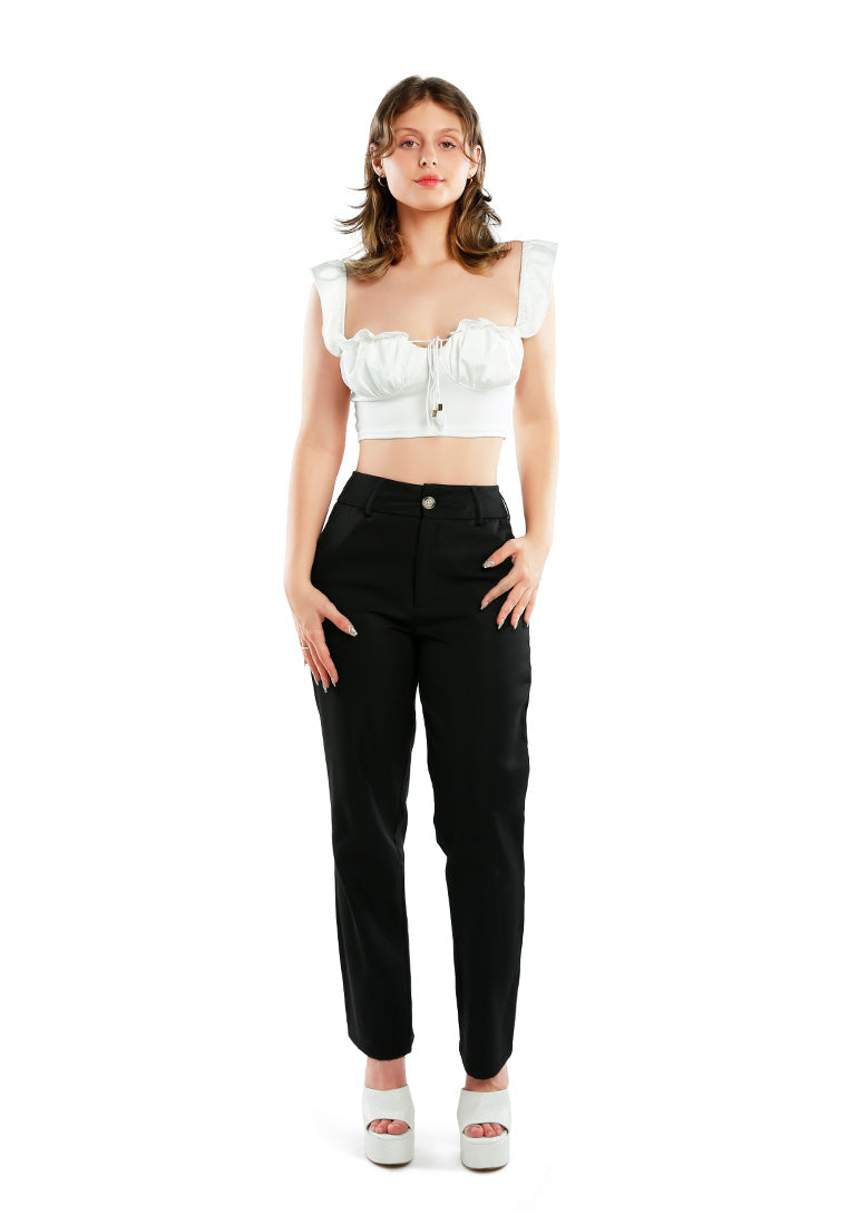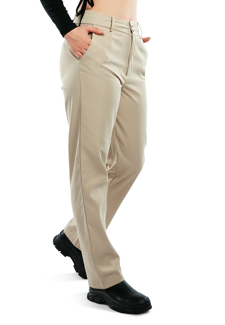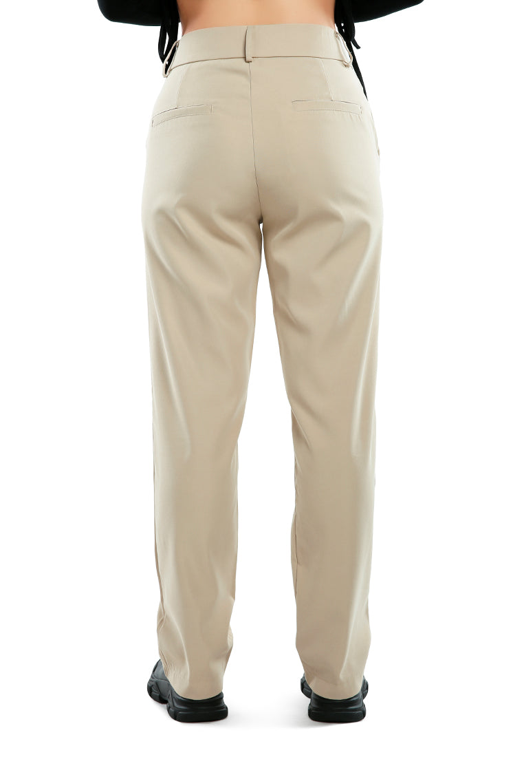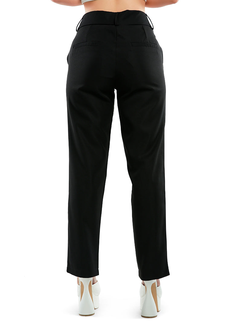The chic semi-casual high waist pants in soft Polycot are versatile and ideal for work and after if feeling experimental. Comes with two slash pockets at the back and belt loops on the waistband.