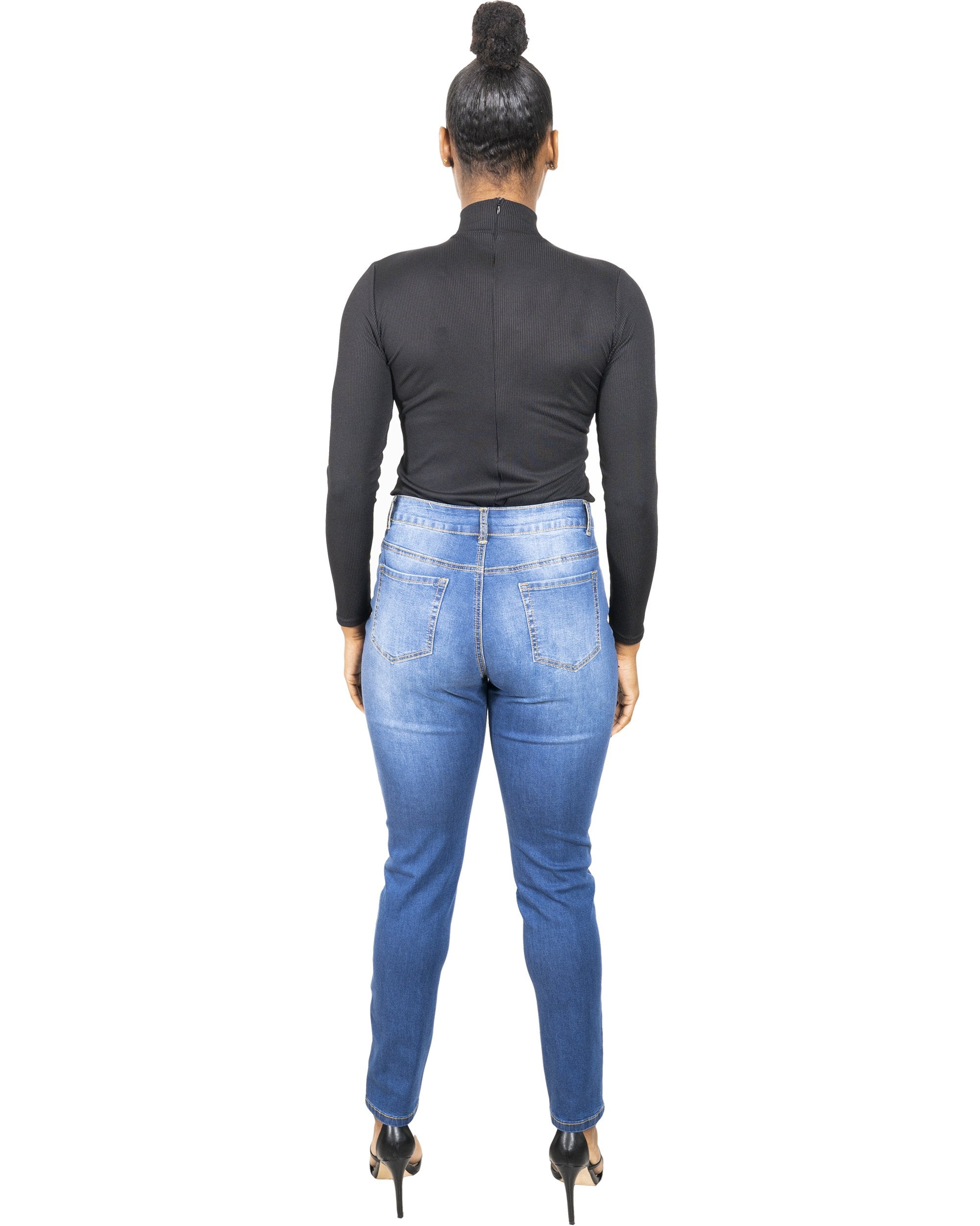 Faded wash denim jeans with some stretch for the perfect form-fitting go-to pair. Mid-rise waist and a standard five-pocket design.
