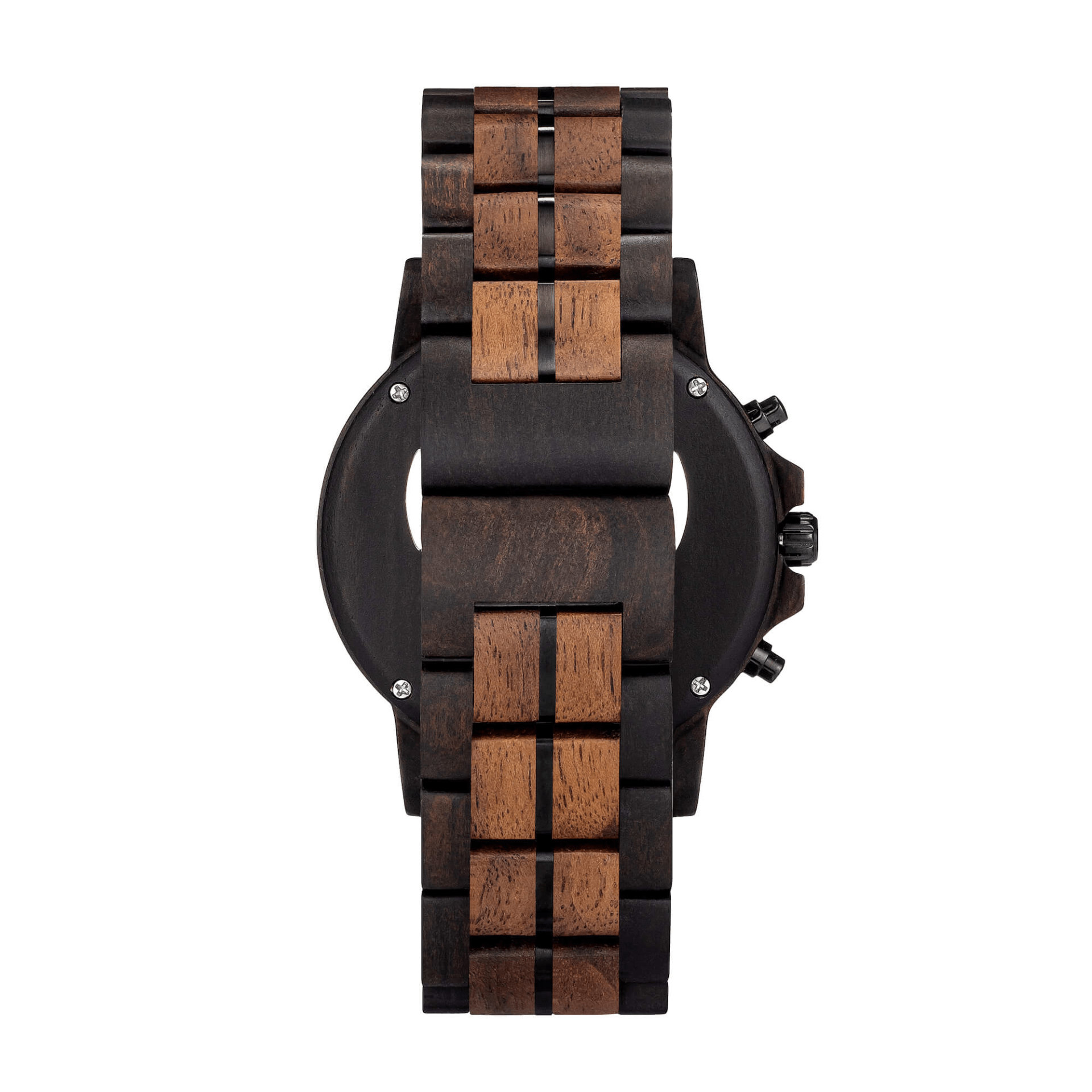If there ever was a pinnacle of wood-working expertise in perfect union with watch making precision, this would be it. We've reached the Apex. The Cascade timepiece delivers uncompromising accuracy using a Japanese Miyota OS00 movement with vertical chronograph and date window - a first for wood watches. The bold walnut wood bezel and black stainless steel single link band offers watch aficionados what they've been craving in a piece as unique as this. Housed in a 45mm case with sapphire coated glass display, the Cascade is built for the longest journeys and made to last.