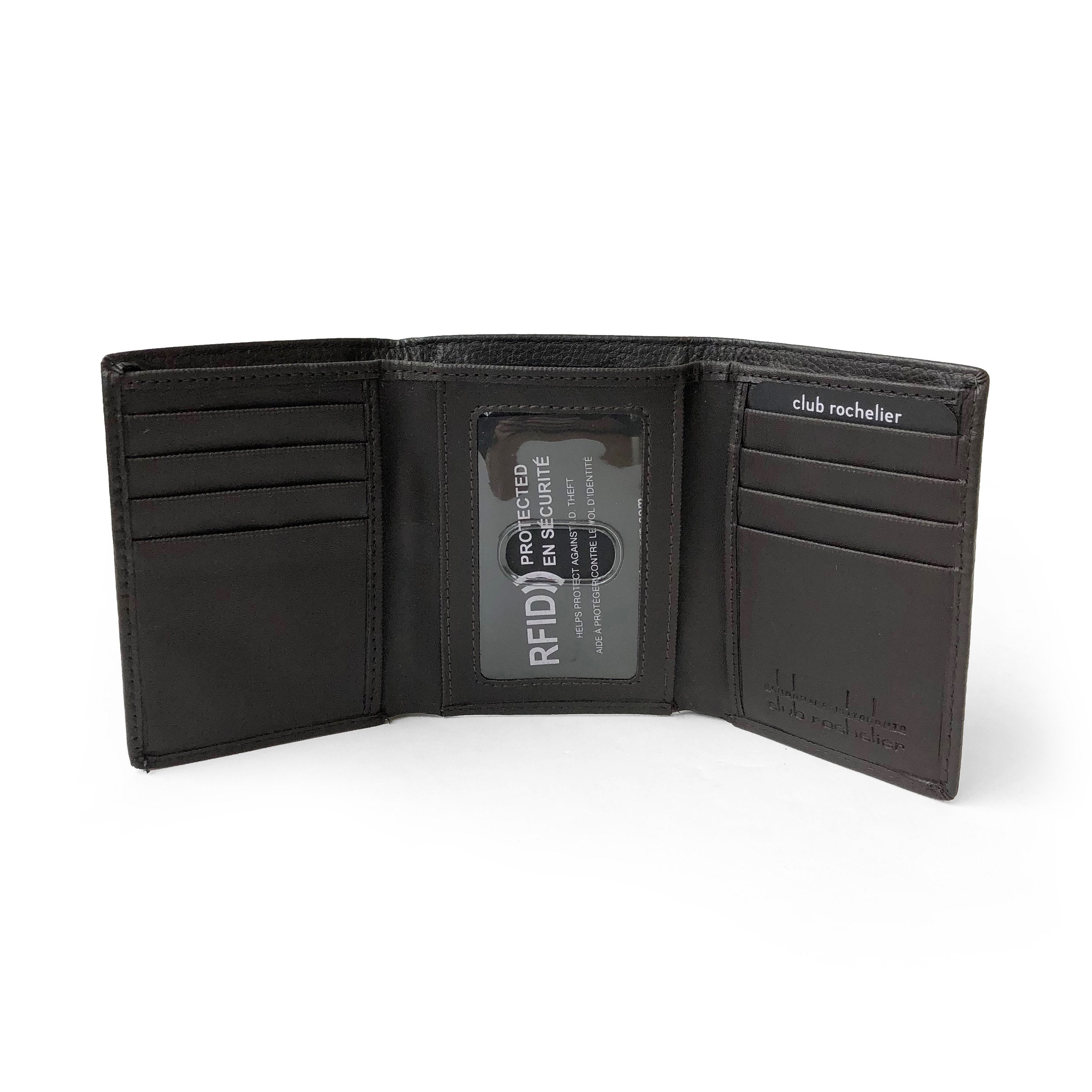 Stylish and modern Club Rochelier trifold leather wallet features 8 credit card slots, 2 slot pockets, 1 ID window.Handcrafted in genuine soft touch leather, you will enjoy multi functional pockets and the compact design.