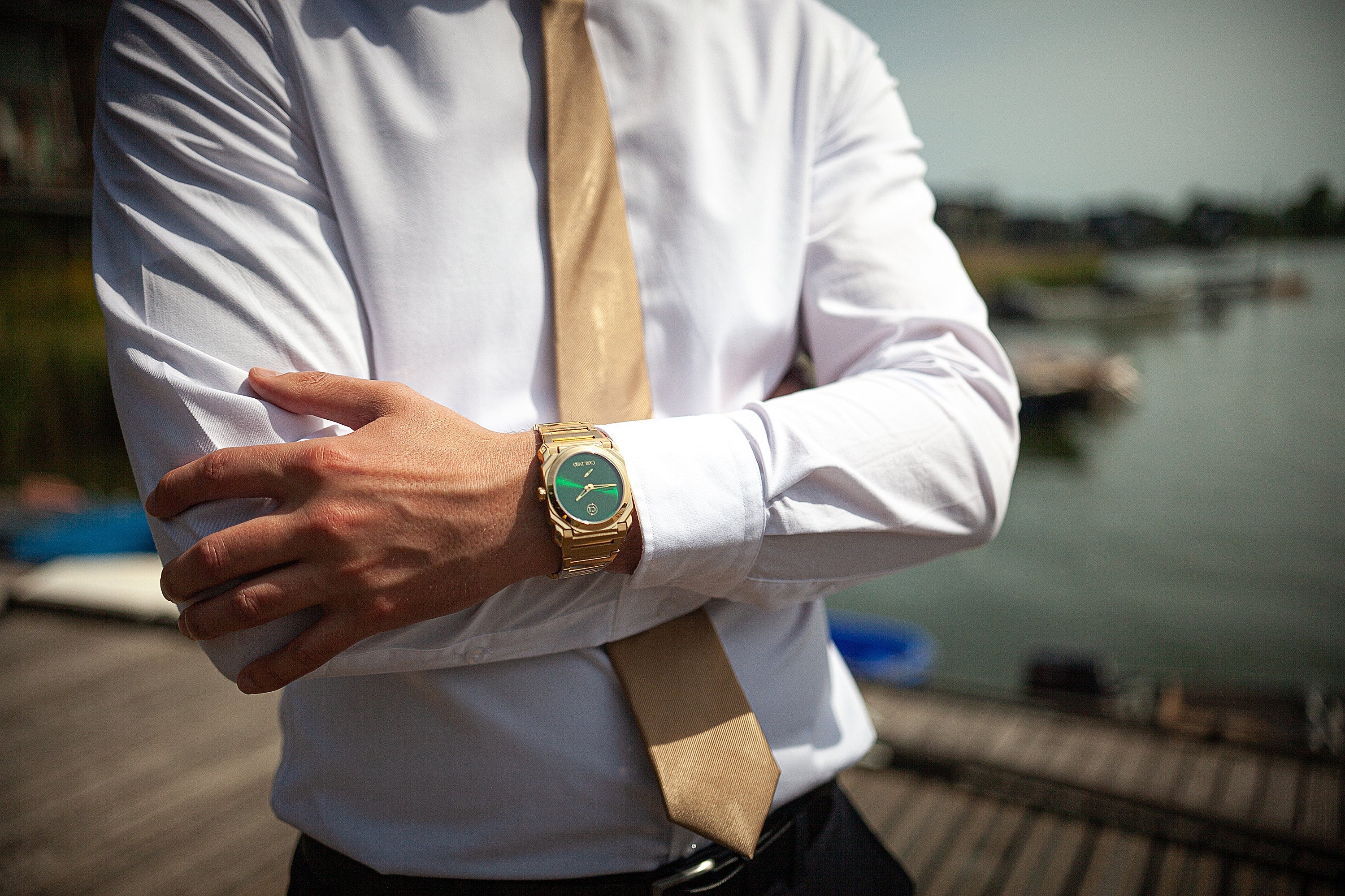Adorning your wrist with a gold or silver stainless steel band, this watch elevates your style to new heights. The 300x20 mm strap length offers versatility and a comfortable fit for various wrist sizes. The combination of superior materials and impeccable craftsmanship ensures both durability and a refined look, making it the perfect accessory to complement your distinguished wardrobe.