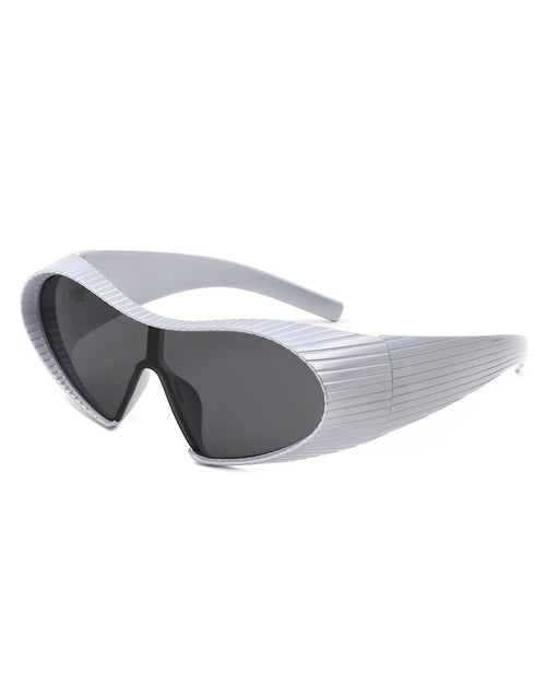 Cramilo's Fashion Oversize Wrap Winged Bar Sunglasses offer a unique blend of statement style and essential sun protection. These sunglasses are designed for those who want to stand out from the crowd with a fashion-forward look while safeguarding their eyes from harmful UV rays. The wraparound design of the frames ensures a comfortable fit and provides unobstructed peripheral vision. This is ideal for various activities, from strolling along the beach to driving on a sunny day. The winged bar frame adds a touch of sophistication to the overall design. This unique frame style elevates the look beyond basic oversized sunglasses, making them perfect for both casual and dressed-up occasions. These sunglasses are equipped with UVA and UVB protection, essential for safeguarding your eyes from the sun's harmful rays. These Polycarbonate lenses provide exceptional vision while offering an extra layer of protection for your eyes. The sunglasses come in a complete stylish packaging box, with a microfiber cleaning cloth and pouch. Cramilo's Fashion Oversize Wrap Sunglasses are a perfect choice for those seeking a combination of style, comfort, and sun protection with their oversized design, wraparound frames, and winged bar.