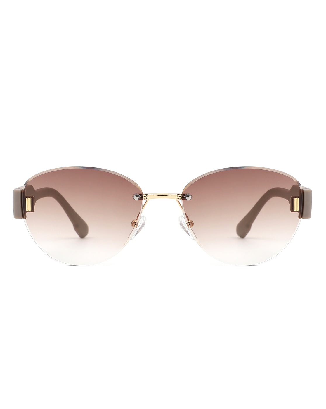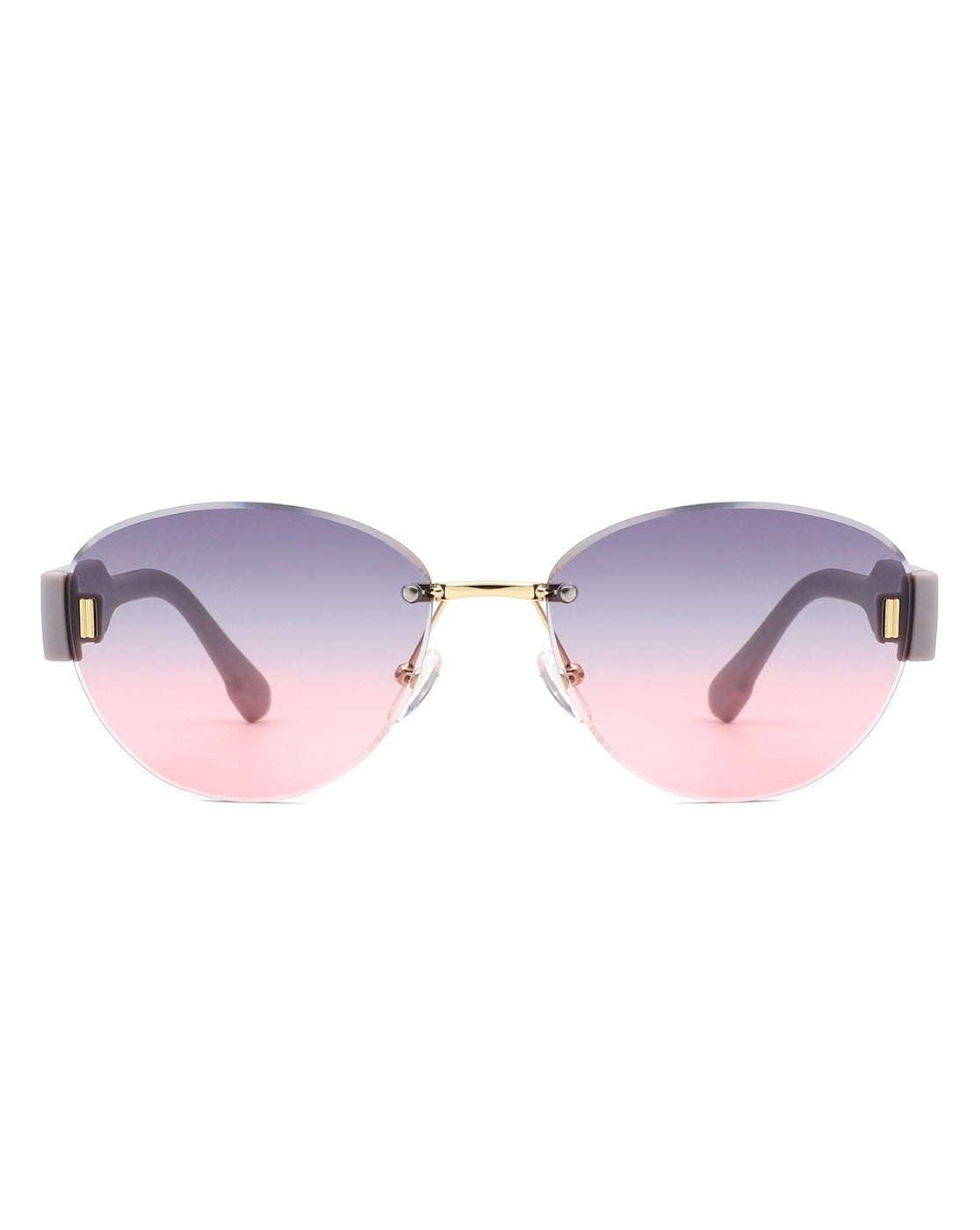 Cramilo Fashion Round Rimless Tinted Oval Sunglasses offer a unique blend of timeless design and contemporary flair. Crafted with the modern woman in mind, these sunglasses provide both style and protection for your eyes. The round cloud design adds a touch of modern edge to the classic round silhouette. While the lenses themselves are round, the frames boast a flattering oval shape. This softens the overall look and complements a wider range of face shapes compared to perfectly round frames. These women's sunglasses are crafted from lightweight materials, ensuring a comfortable fit throughout the day. Cramilo Fashion Round rimless Sunglasses boast UVA and UVB protection, shielding your eyes from the sun's damaging rays. These Polycarbonate lenses provide exceptional vision while offering an extra layer of protection for your eyes. These woman's sunglasses are a versatile accessory that can elevate any outfit. The sunglasses come in a complete stylish packaging box, with a microfiber cleaning cloth and pouch. Whether you're dressing up for a special occasion or keeping it casual for a day out, these sunglasses will add a touch of sophistication and polish. Cramilo Fashion Round Rimless Tinted Oval Sunglasses are a must-have for any woman who wants to look and feel her best.