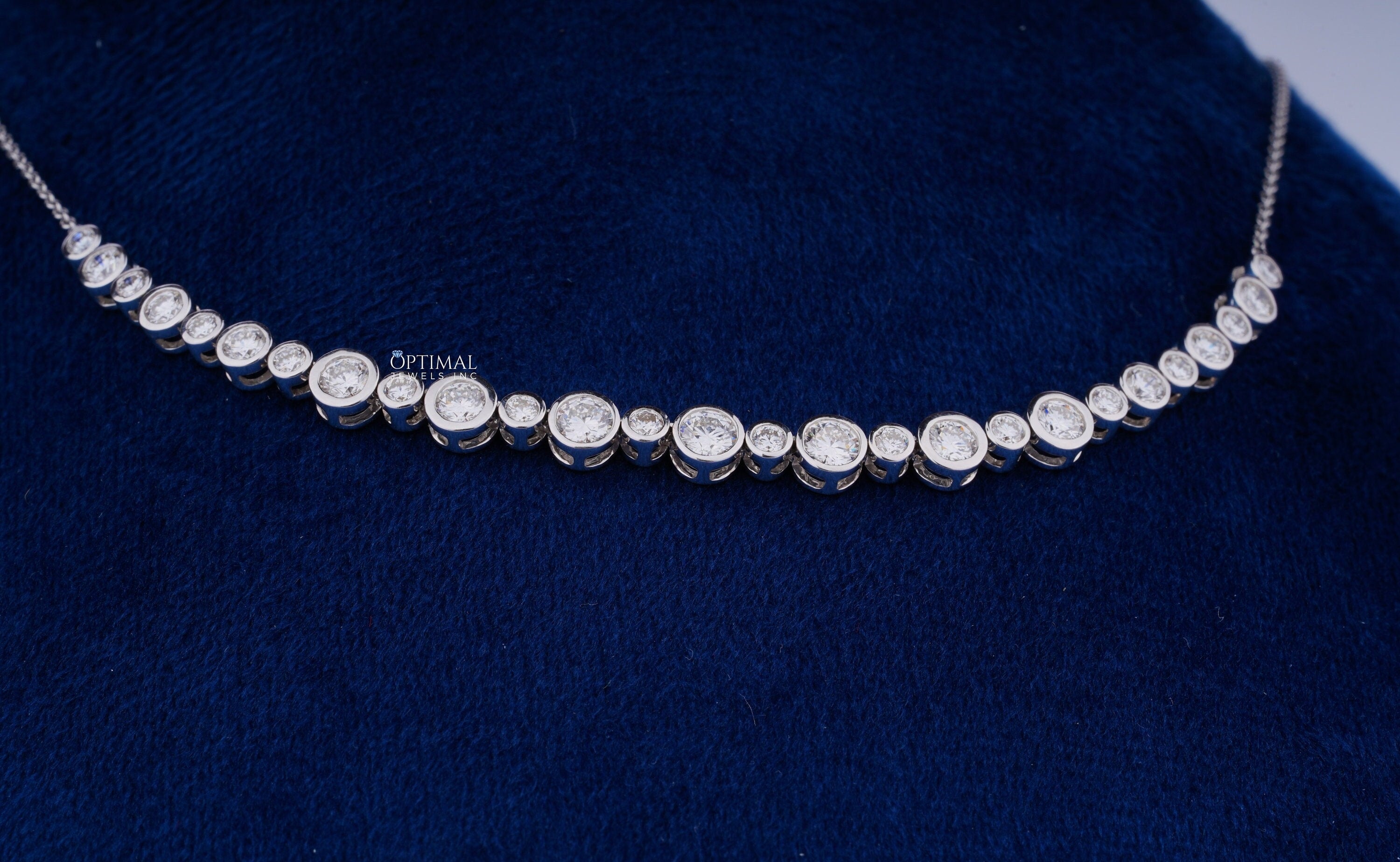 Elegant Bezel Set Lab Grown Diamond Necklace – 2.67 Ctw Round Cut Cluster Tennis Design, 18 Inch Wedding Necklace, Perfect Gift for Her