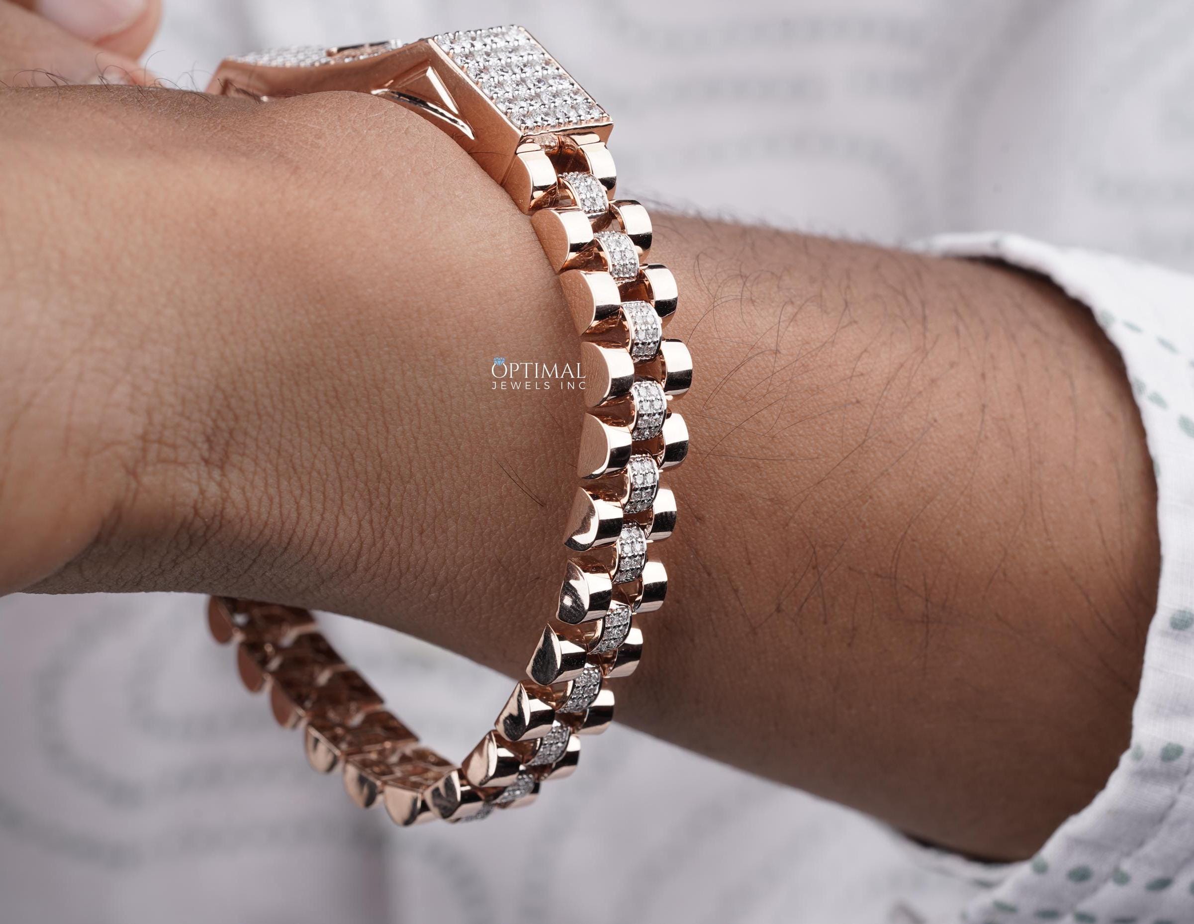 Elegant Rose Gold Cuban Link Bracelet, 4.05 CTW Lab Grown Pave Diamond-Studded Bracelet, Luxury Bracelet for Jewelry Lovers, Bracelet For Him