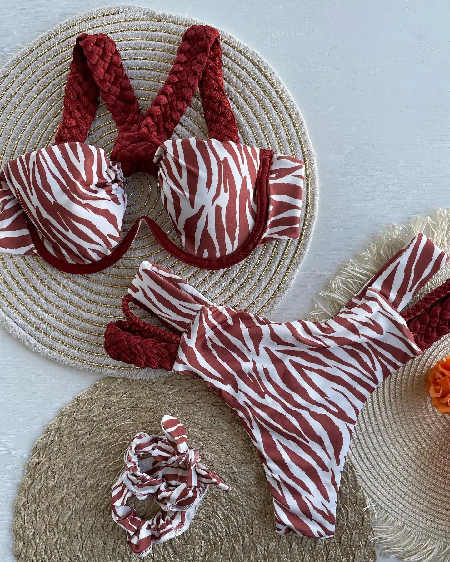 Introducing the Sexikinis Bikini Set, featuring a seductive halter top and low waist bottoms made from high-quality polyester material. The eye-catching zebra pattern adds a touch of wildness to this beach style swimsuit. Enhanced with underwire support and padding for a comfortable fit, this set is perfect for the modern woman who loves to show off her figure. Crafted with intricate weaving techniques, this bikini set is a must-have for the summer of 2024. Make a statement and turn heads with Sexikinis Swimwear. Order now and unleash your inner goddess!