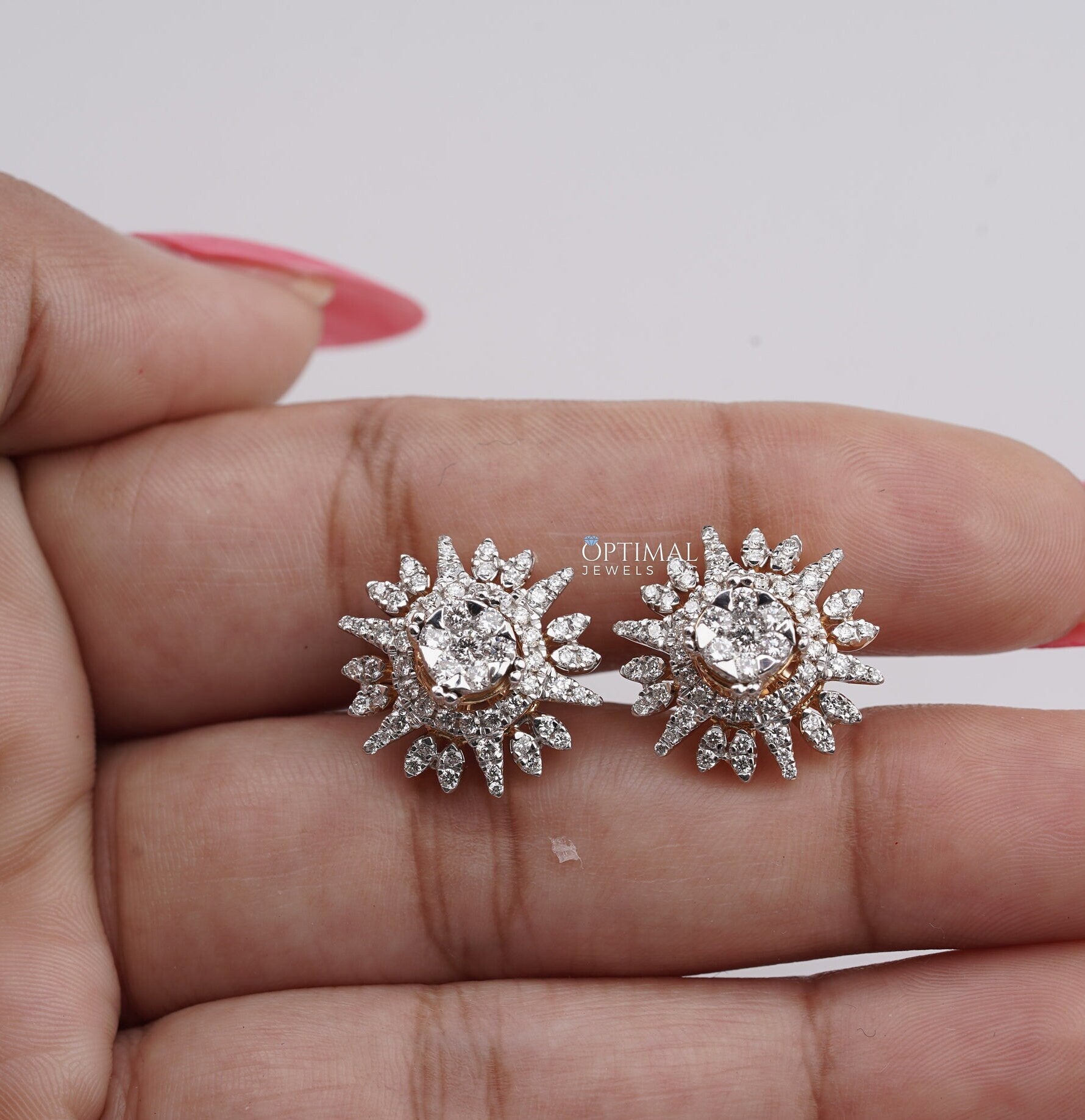 Glamorous Lab-Grown Diamond Flare Earrings, 3.00 CTW Round Cut Diamonds, Pave Halo Set Diamond Earring Perfect for Every Occasion For Women