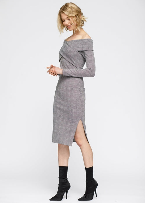 Sexy yet sophisticated plaid off-shoulder crisscross dress features:
