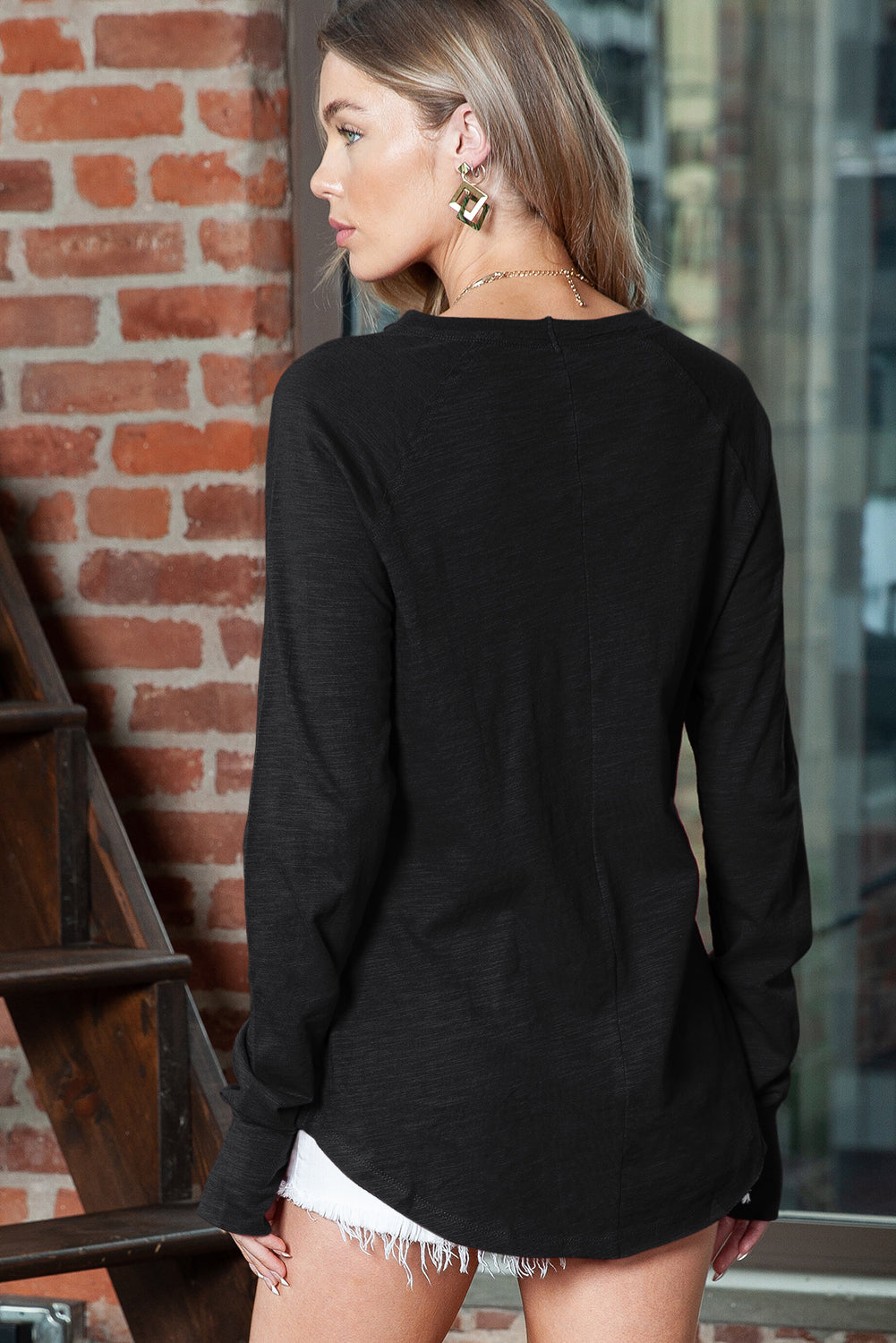 •The thumbhole design adds a trendy and unique touch to the classic long sleeve t-shirt.