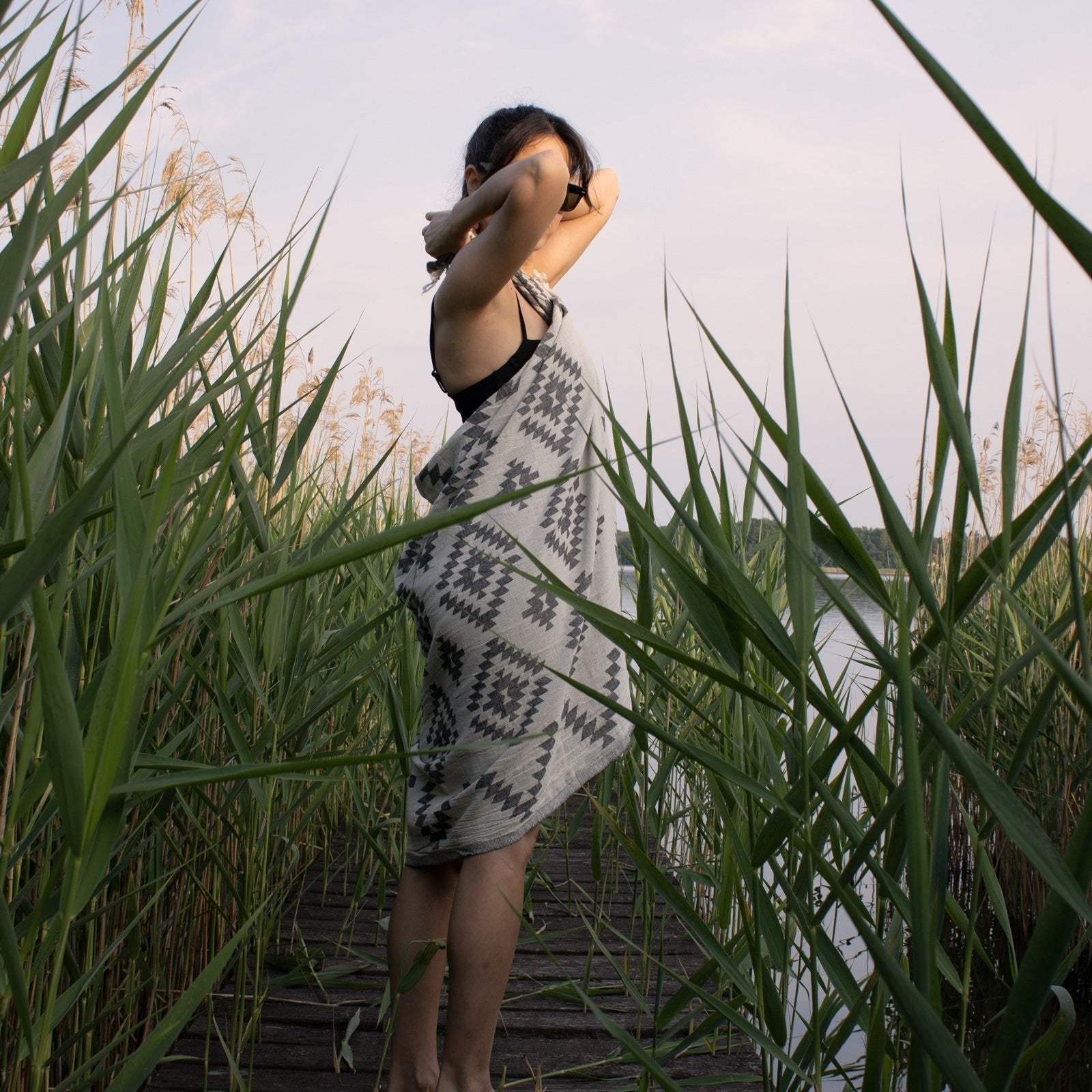Turkish towels are not only for bath and beach but are also ideal for breastfeeding cover, tablecloth, a nice and warm decoration piece at home and terrace, light throw blanket, a sarong over swimwear and/or shawl.