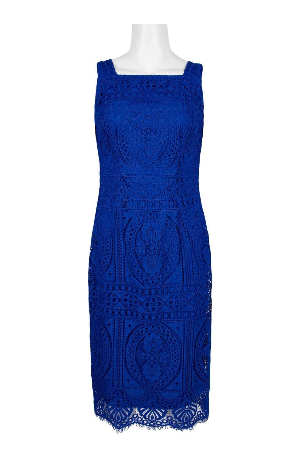 London Times Square Neck Sleeveless Zipper Side Crochet Dress; Fabric: Crochet (100% Polyester) Lining (100% Polyester); Fabric...