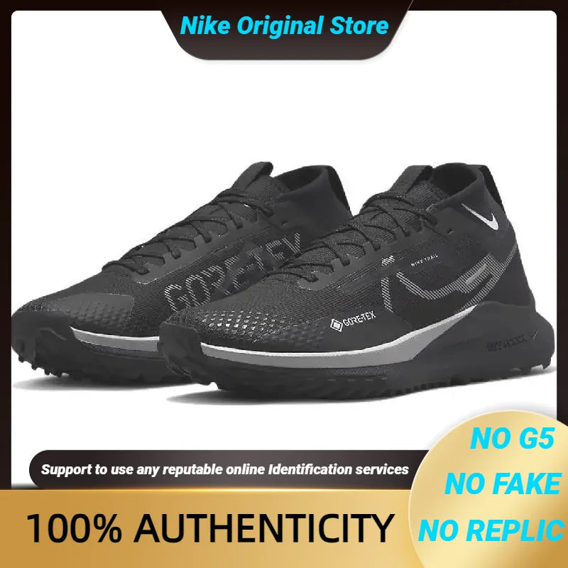 The Nike React Pegasus Trail 4 Gore-Tex Black Wolf Gray is trail running sneaker with waterproof features. Something that makes this shoe stand out is the Gore-Tex along the upper. It helps keep the foot dry without adding weight or sacrificing comfort. The sneaker boasts an all-black construction with Wolf Gray and reflective detailing. Flecks of reflective material in the laces and a strip along the side panels improve visibility in low lighting and add a pop of silver. Unlike other trail running sneakers, this version of the React Pegasus Trail 4 has less rubber on the outsole. This allows the runner to transition from rough terrain to pavement. Other notable features include the full-length Boost unit in the midsole and the grippy traction pattern underfoot. Our StockX experts like that some versions of the sneaker feature ‘JUST DO IT’ along the midsole, while others display ‘JUST RUN IT.’ The Nike React Pegasus Trail 4 Gore-Tex Black Wolf Gray was released on August 9th, 2022, and retailed at $160.