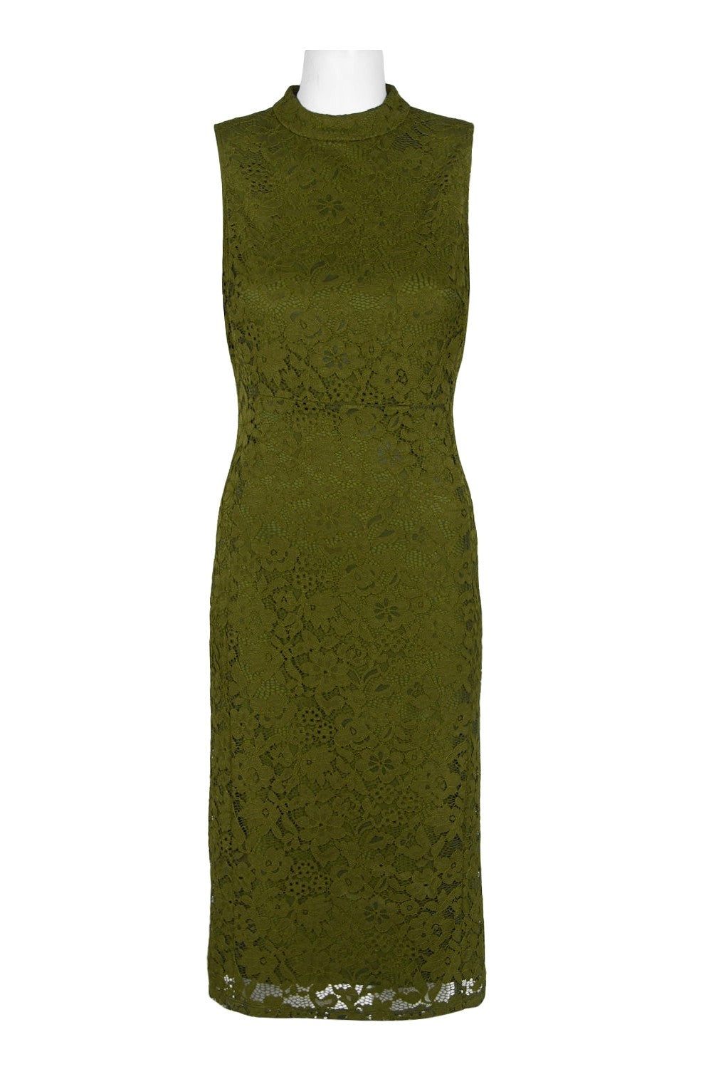 Nine West High Neck Sleeveless Zipper Back Slit Back Floral Lace Dress