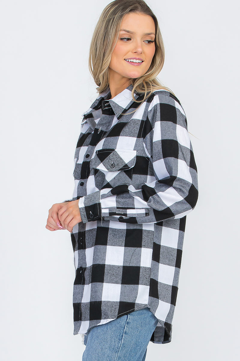 Oversized Plaid Flannel All over pattern Flat collar Dual chest pockets with button closures Button up front....