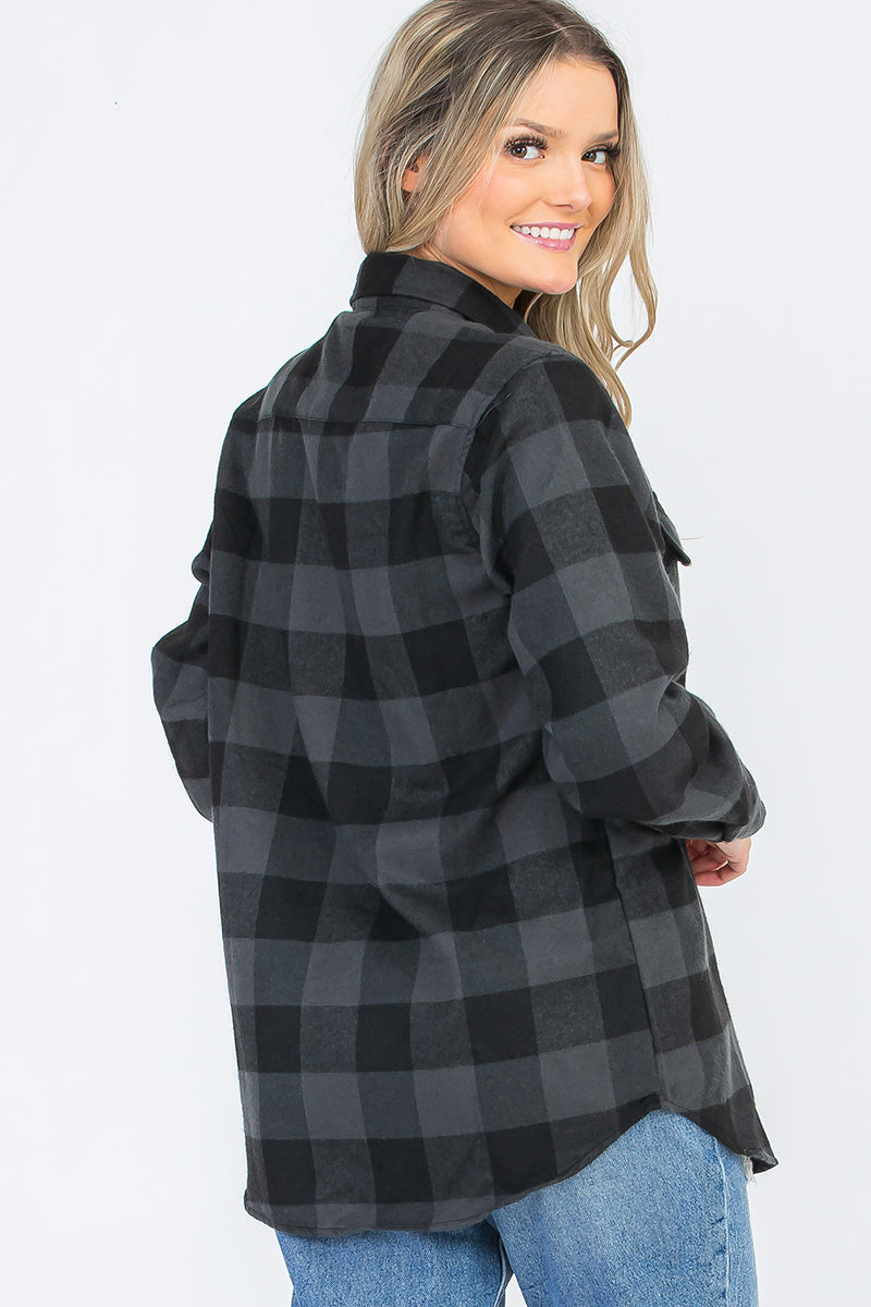 Oversized Plaid Flannel All over pattern Flat collar Dual chest pockets with button closures Button up front....