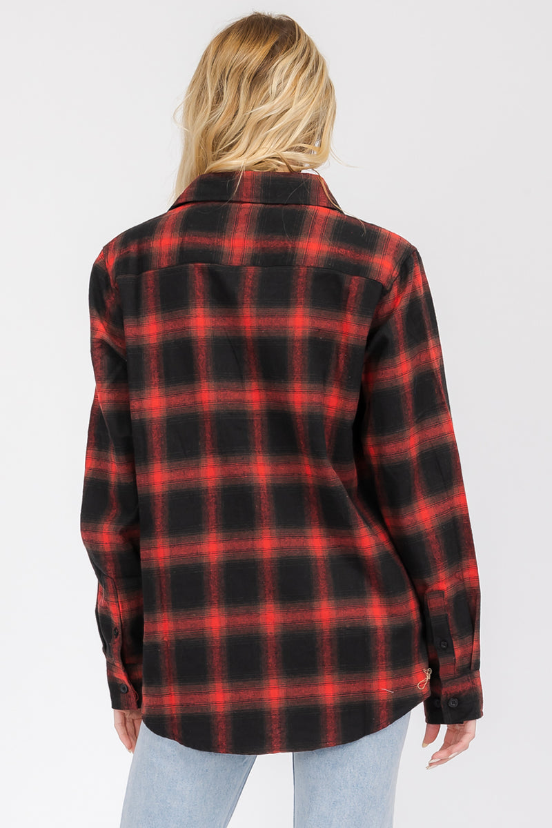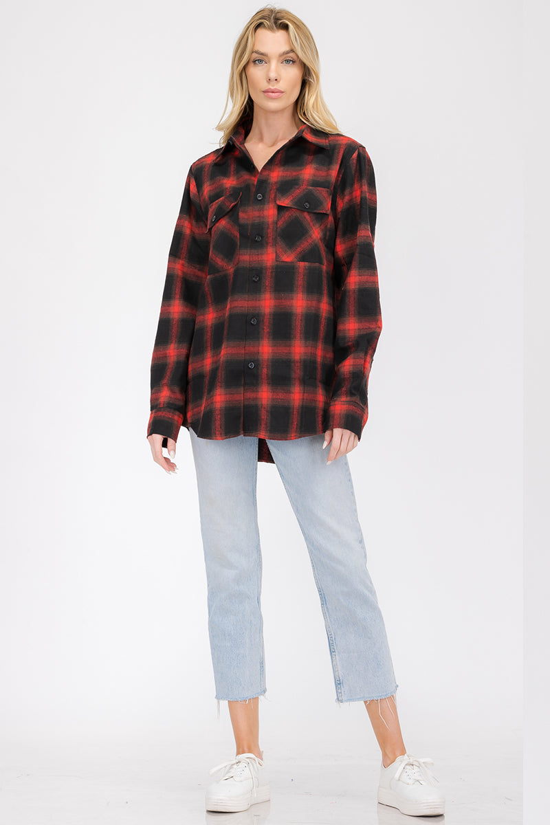Oversized Plaid Flannel All over pattern Flat collar Dual chest pockets with button closures Button up front....