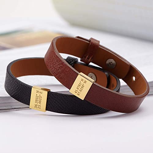 A comfortable leather bracelet can be customized with your special place's latitude longitude coordinates. Whether a first date, a wedding or an enjoyable vacation spot, your significant other will cherish the thought and effort you put into creating such a sentimental coordinates bracelet.