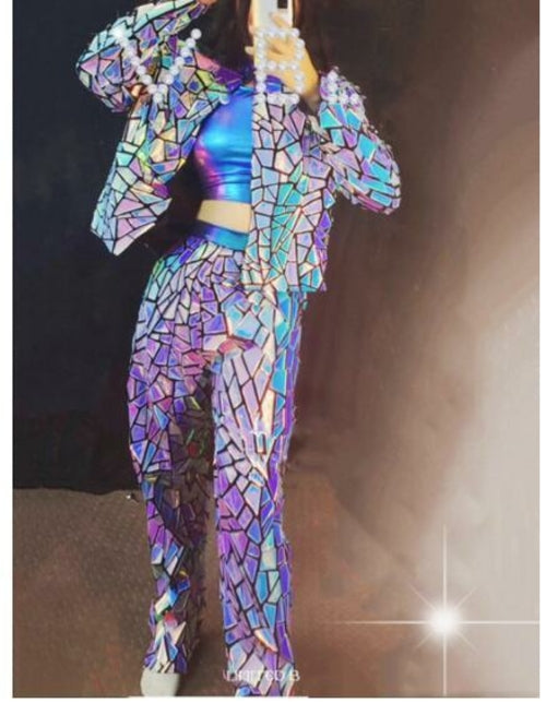 Purple Blue Laser Mirror Sequins Top Short Dress Women Singer Dancer