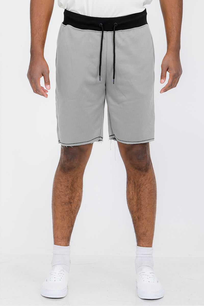 Raw Cut Sweat Shorts60% Cotton 40% PolyesterRegular FitAbove the KneeElastic waist with drawstringSingle Back Pocket