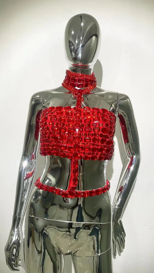 Ready To Ship Bandage Women Sexy Halter Big Crystal Bodycon Tops
