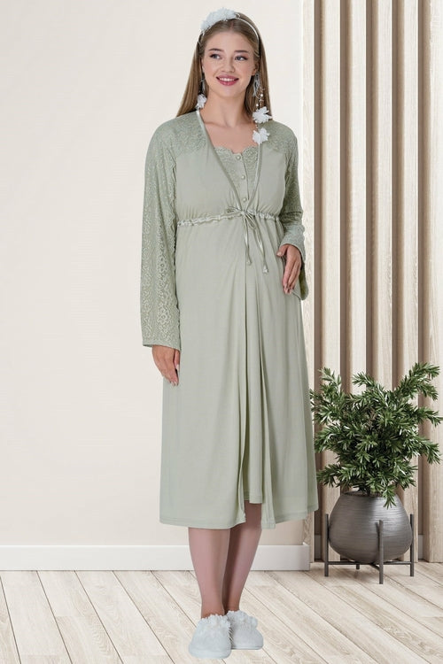 A nightgown with a dressing gown that can be worn comfortably during pregnancy and that provides ease of breastfeeding by opening the front thanks to its special cut (breastfeeding)