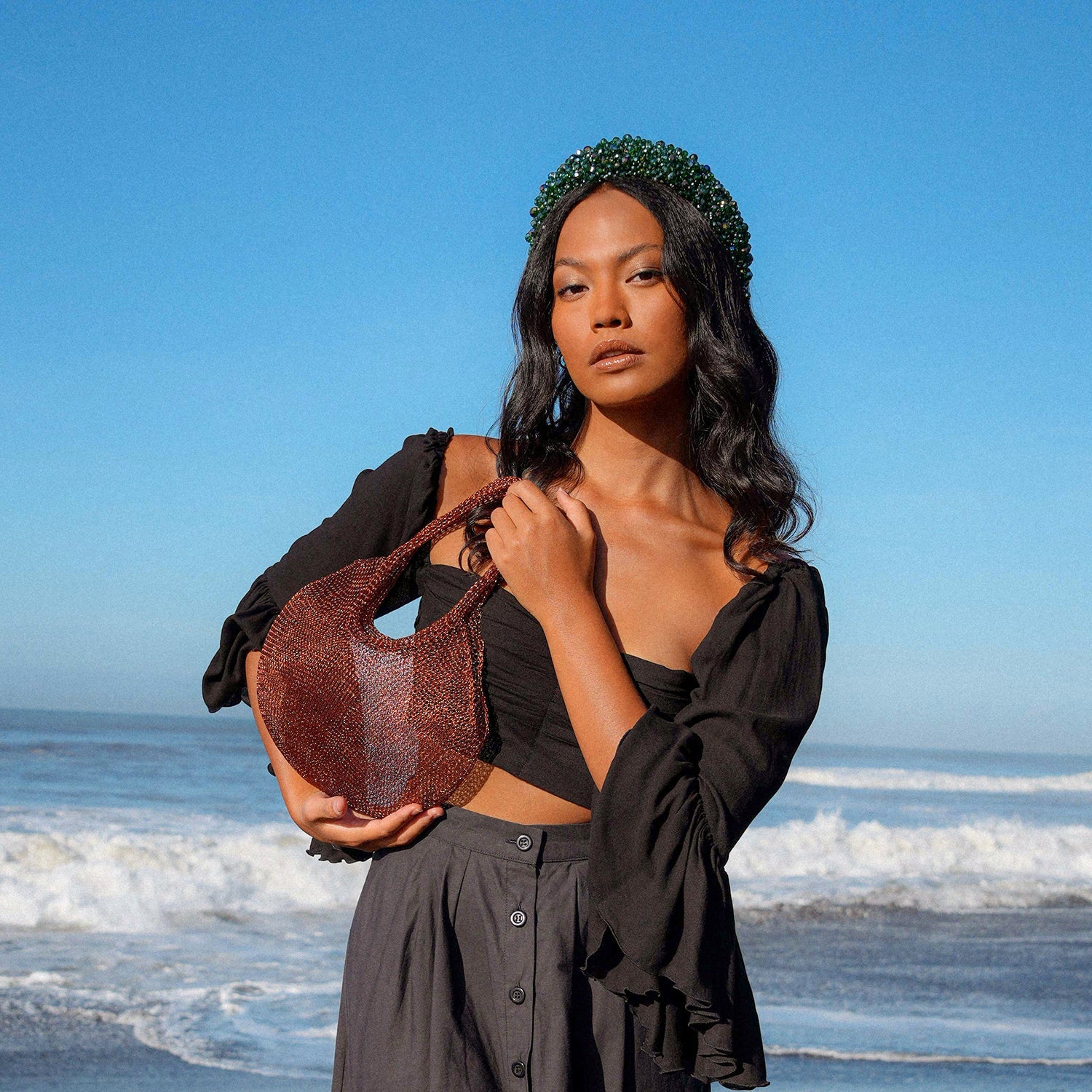 Precious handwoven tote bag made from stainless metal wire. Made carefully by our artisans in remote villages in Bali, who create the bags from their very own homes. It is a true masterpiece.