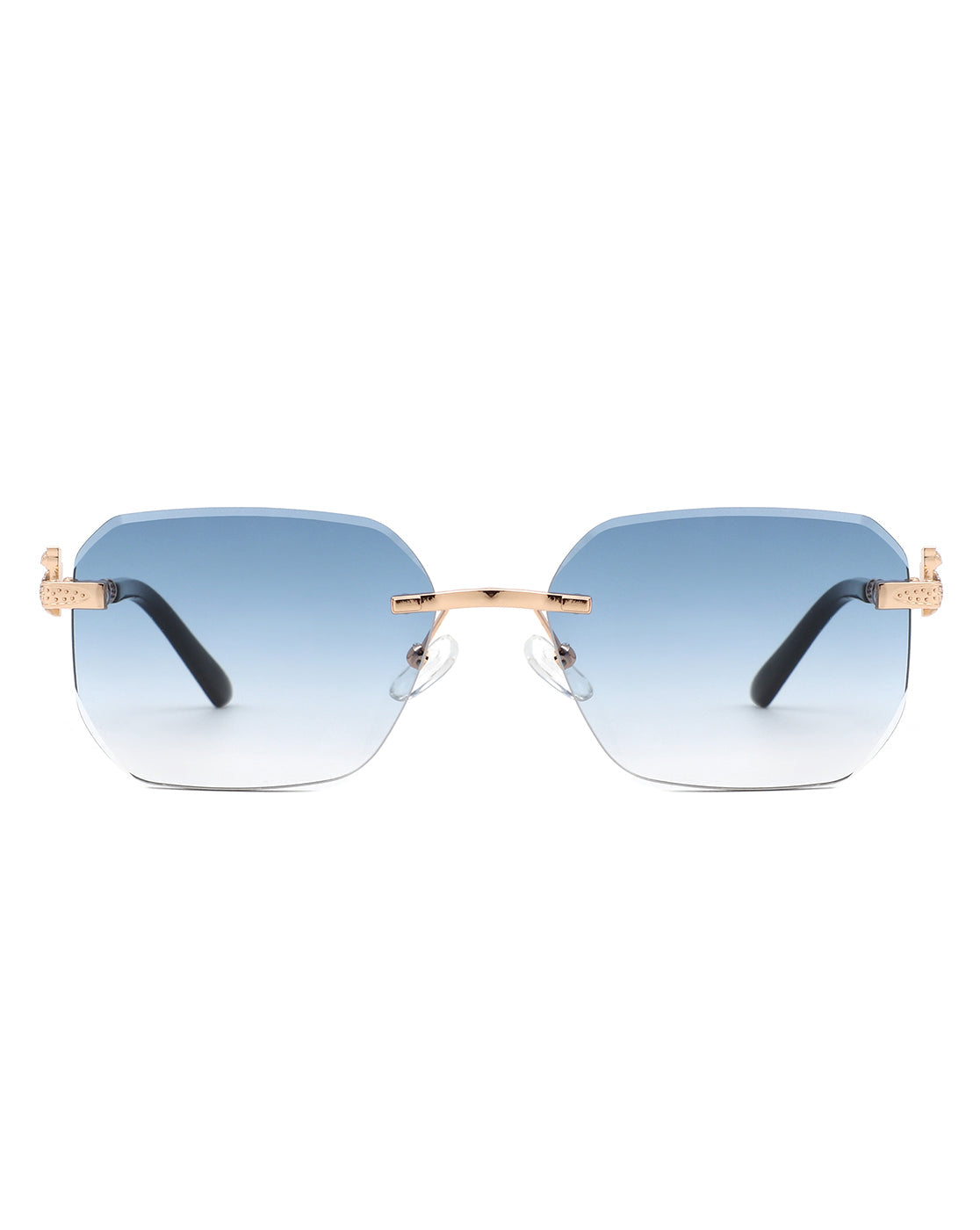 Embrace the minimalist look with the Cramilo, a pair of rimless rectangle-tinted square sunglasses that exude timeless style. This unisex design offers a perfect blend of fashion and functionality, making it a versatile accessory for any occasion. The rimless frame creates a clean and sophisticated look. This design is ideal for those who prefer a lightweight and unobtrusive feel. The rectangular tinted lenses offer a touch of retro inspiration with a modern edge. This shape complements various face shapes, particularly square, oval, and round faces. These shatter-resistant polycarbonate lenses are lightweight and provide 100% UVA and UVB protection, shielding your eyes from harmful UV rays. Polycarbonate is less likely to shatter than glass lenses, making them ideal for everyday wear. The sunglasses come in a complete stylish packaging box, with a microfiber cleaning cloth and pouch. The Cramilo rimless rectangle tinted square sunglasses offer a timeless design, superior UV protection, and comfortable wear. With Our versatile style, they are a perfect choice for anyone seeking a sophisticated yet understated pair of sunglasses to complement your look.