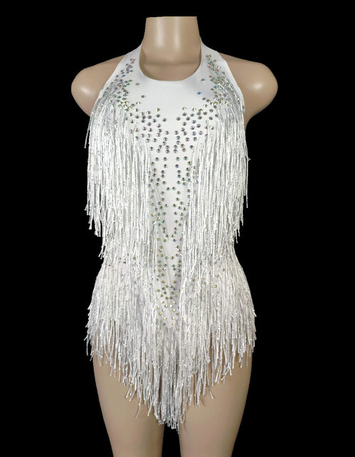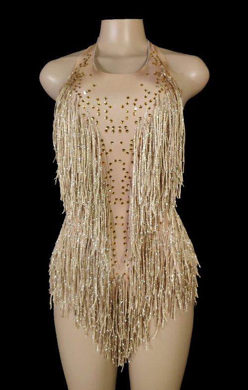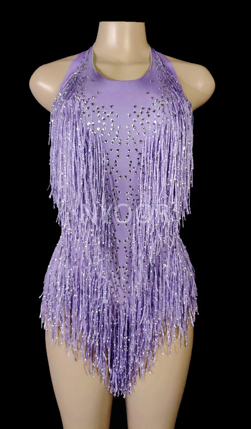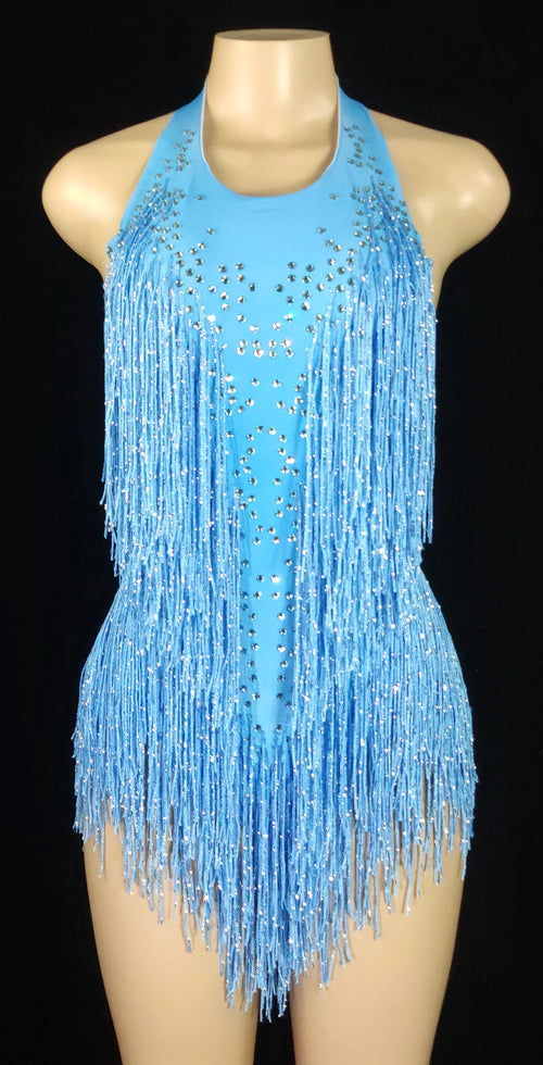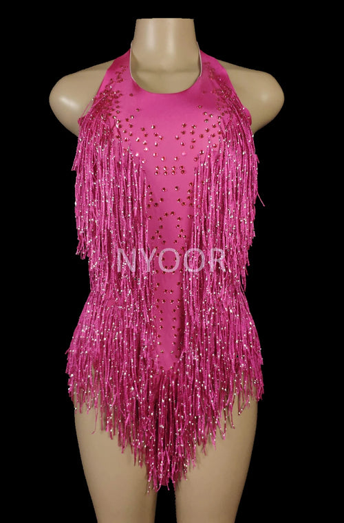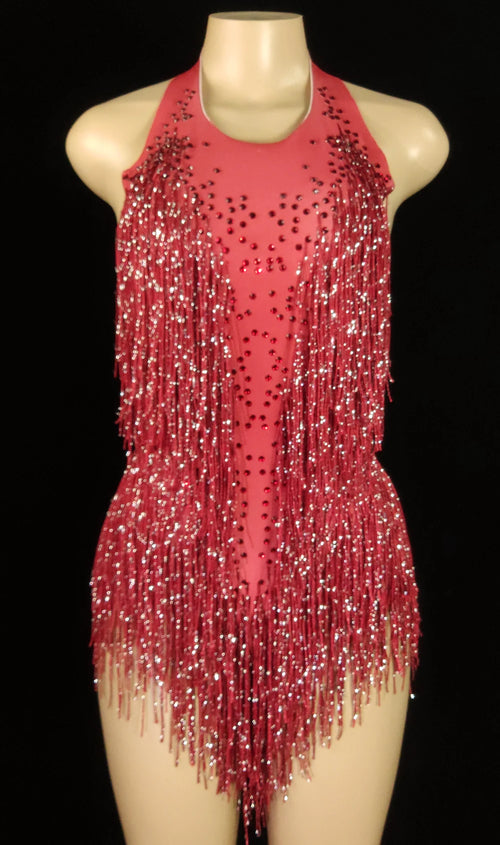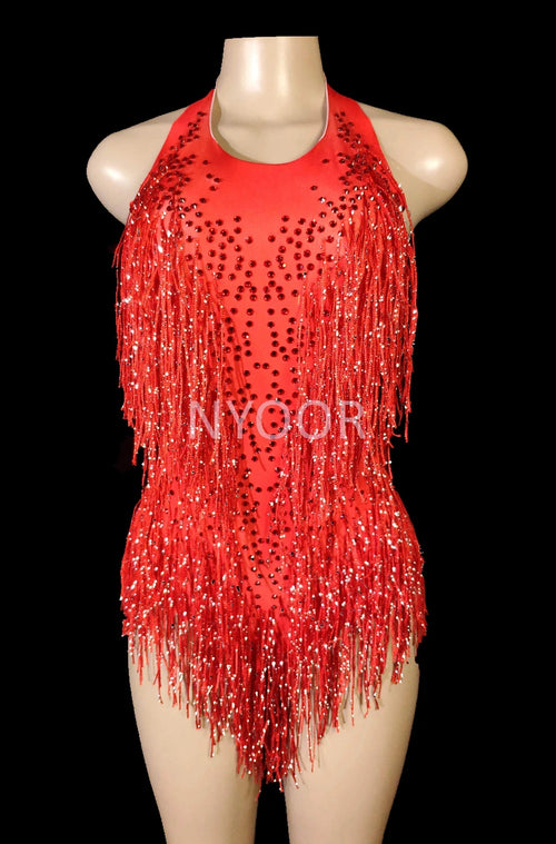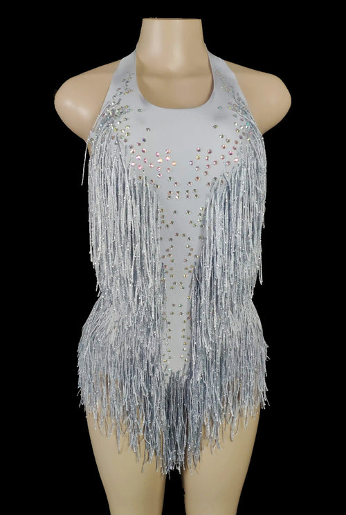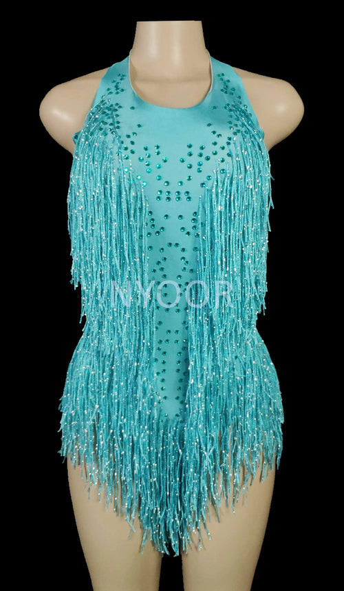 Sparkly Crystals Fringe Bodysuit Women Nightclub Party Outfit Dance