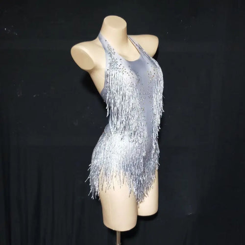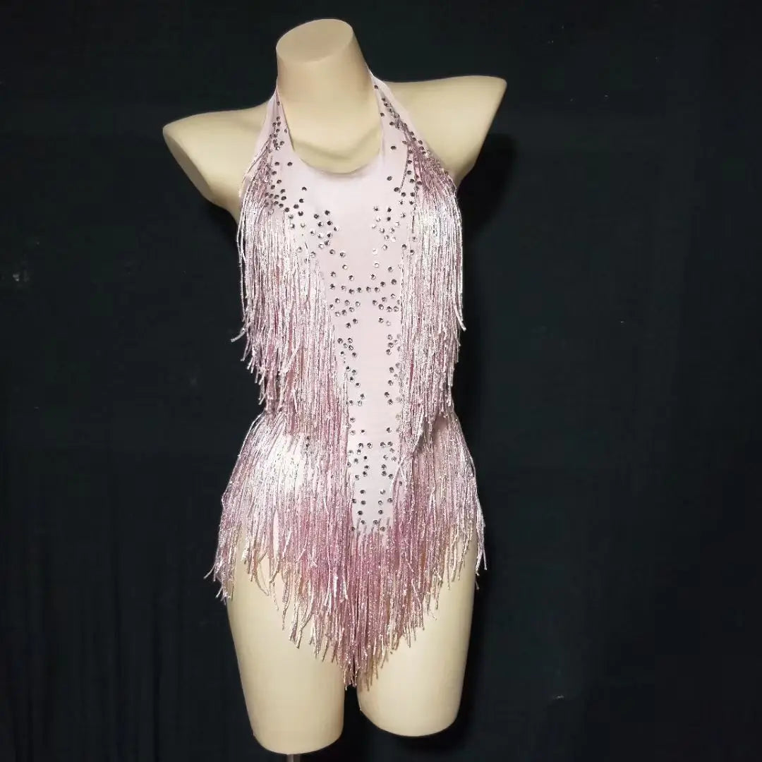 Gold Black Silver Red Tassel Hollow Out High Elasticity Beading Bodysuit DJ Party Bodysuit