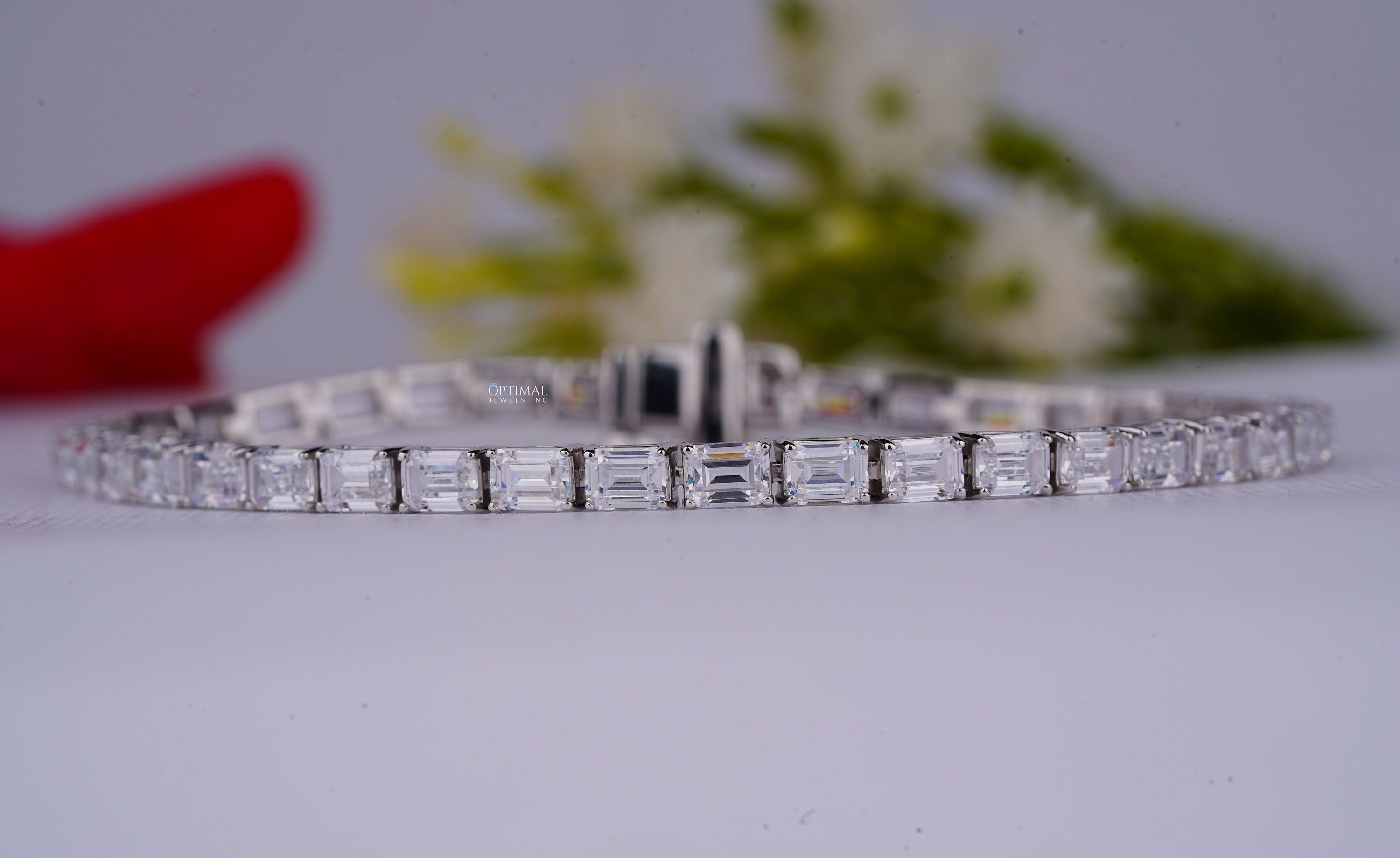 Stunning Emerald Cut Lab Grown Diamond 8.00 Ctw White Gold Tennis Bracelet, Diamond Bracelet For Women, Special Birthday Gift For Wife
