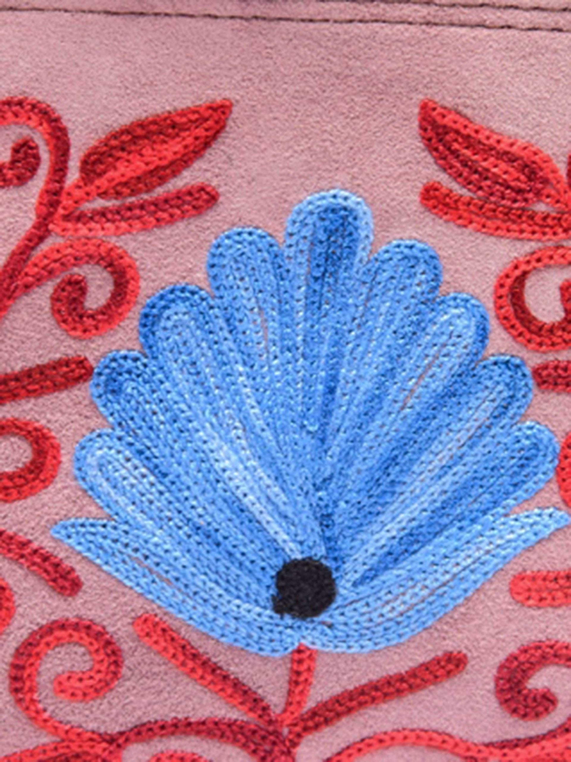 This Contemporary and functional cross-body bag gives a stylish look. This embroidered floral bag has beautiful patterns, colors, and an adjustable suede strap.