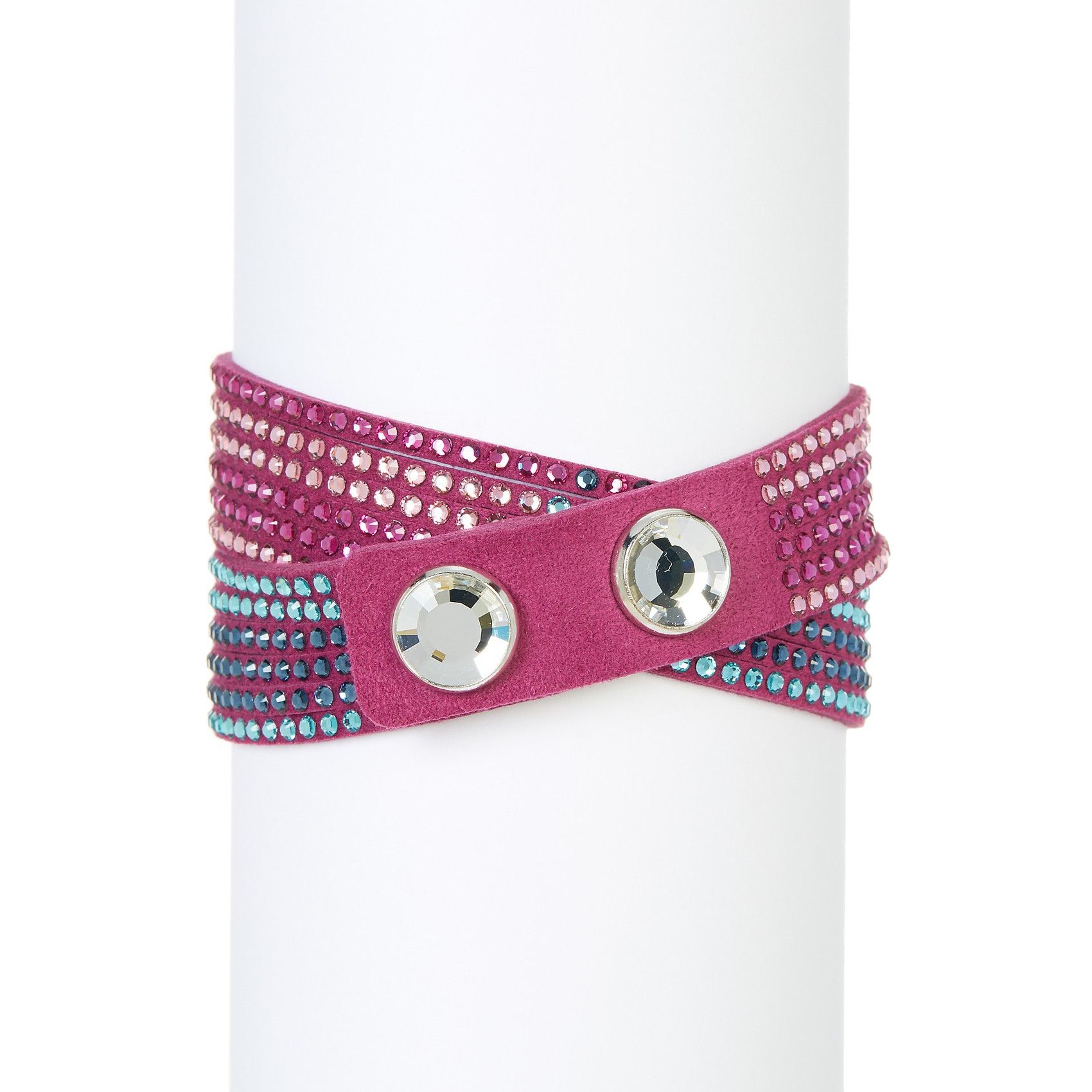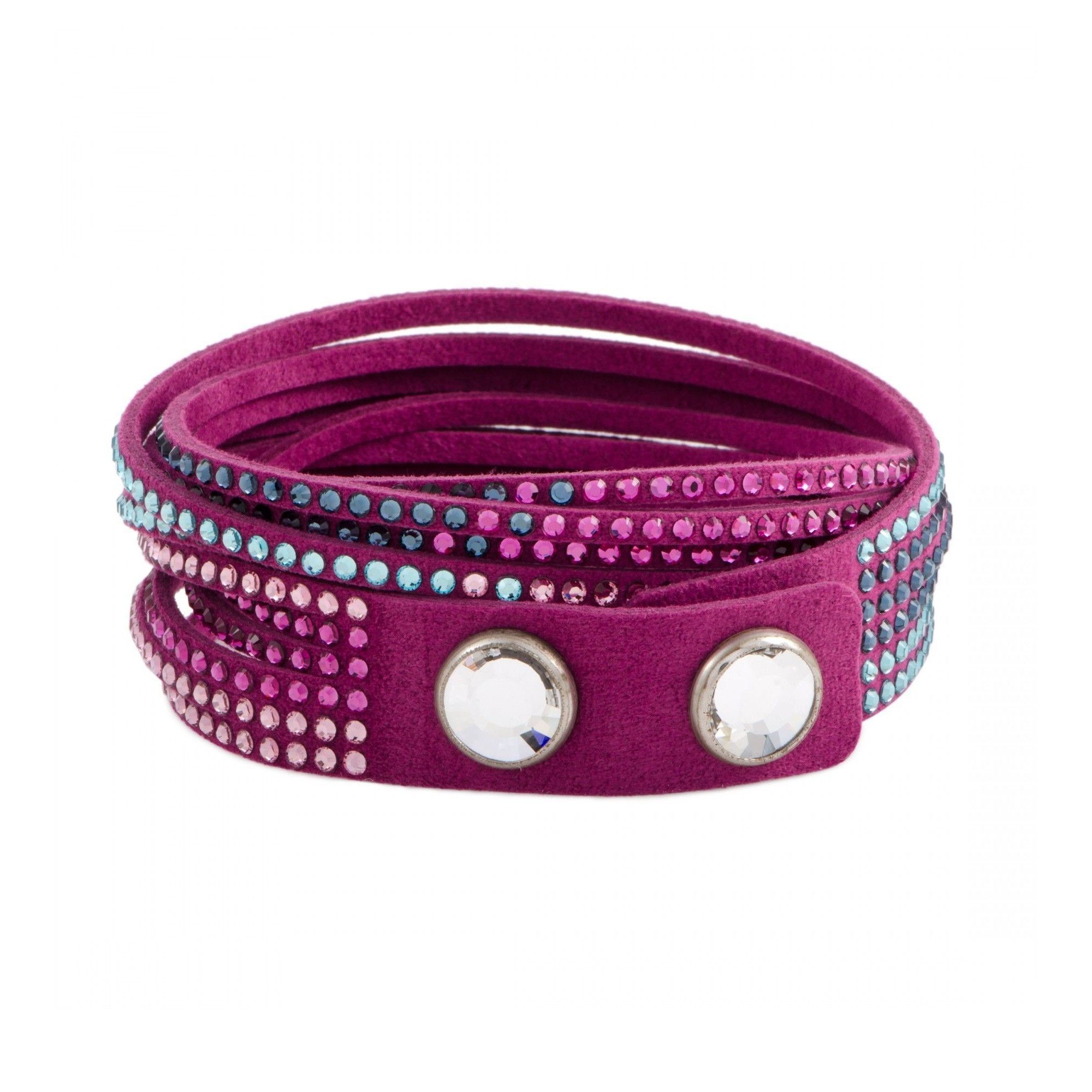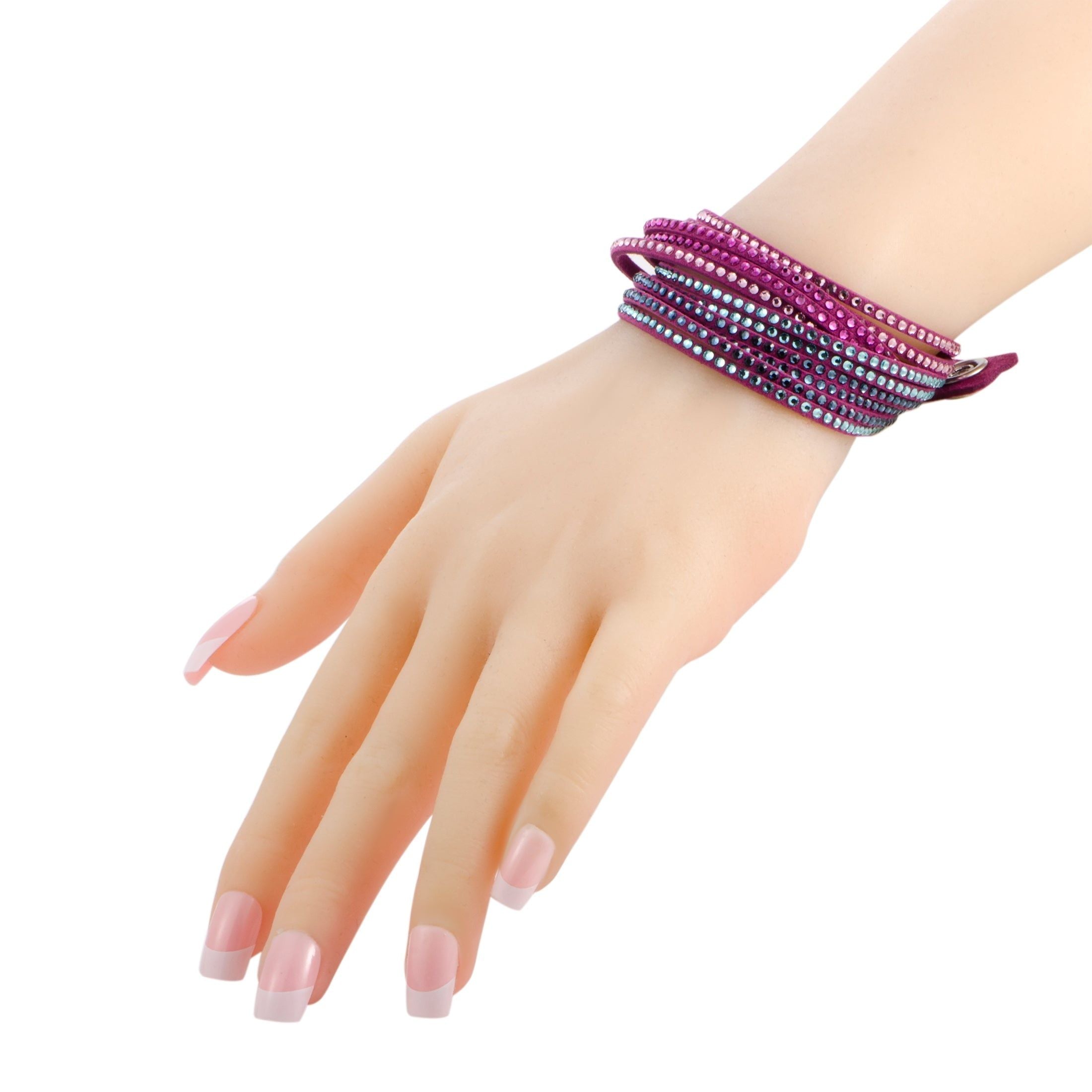 Given an attractively fashionable appeal by the beautifully contrasting pink and blue tones, this fascinating bracelet will add a splendidly vivacious touch to any outfit of yours. The bracelet is designed by Swarovski and it is set with a plethora of eye-catching crystals. It gvies the appearance of two slakes comfortably around the wrist.