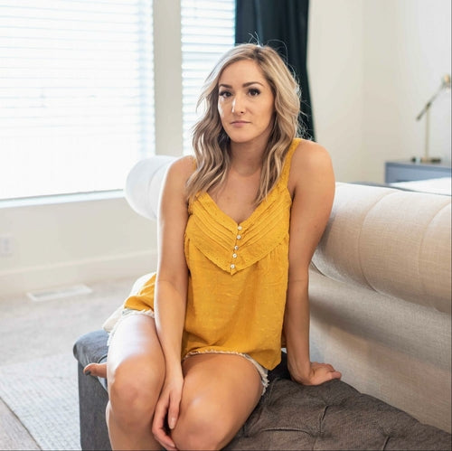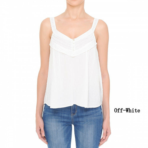 Demure and delicate, this v neck camisole style top is solid toned and sweet.
