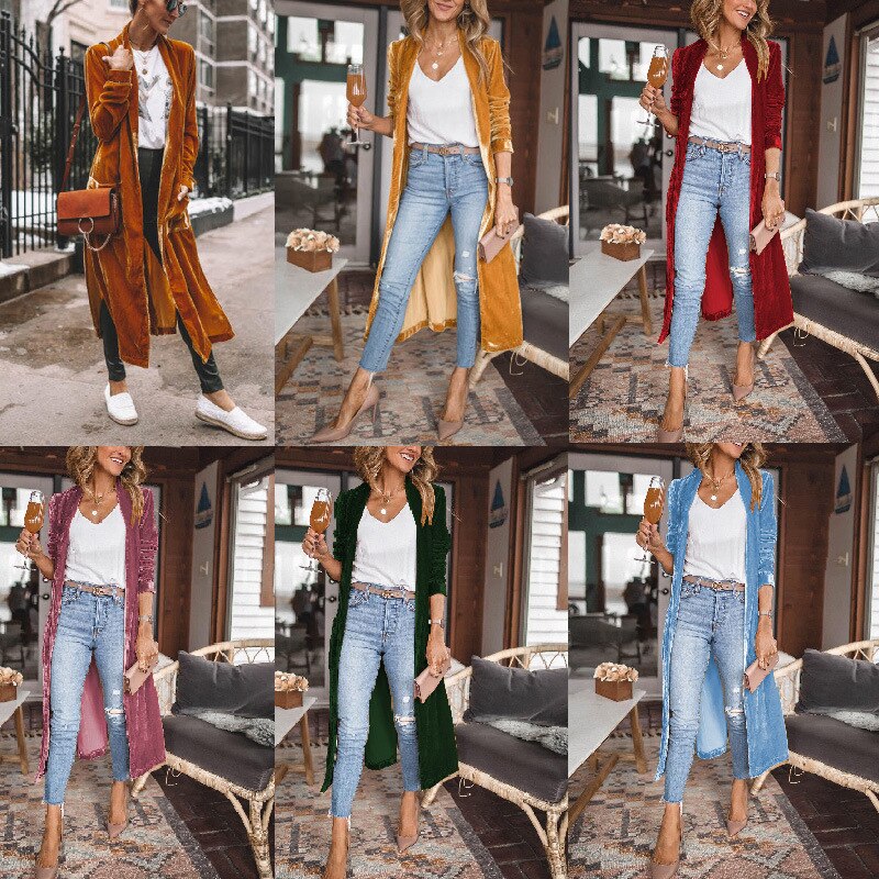 TEELYNN Velvet Long Coats for Women Casual Long Sleeve Loose Autumn