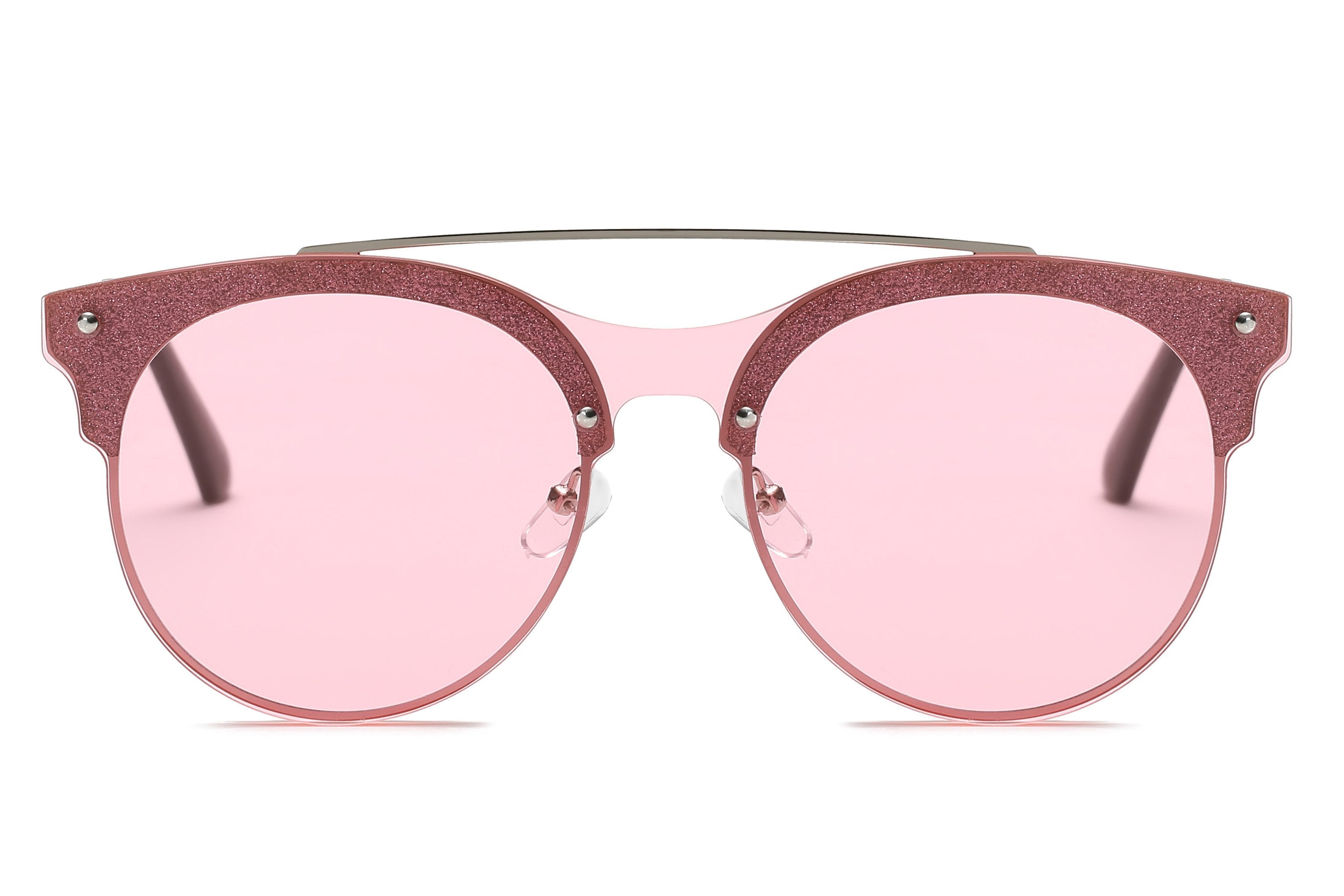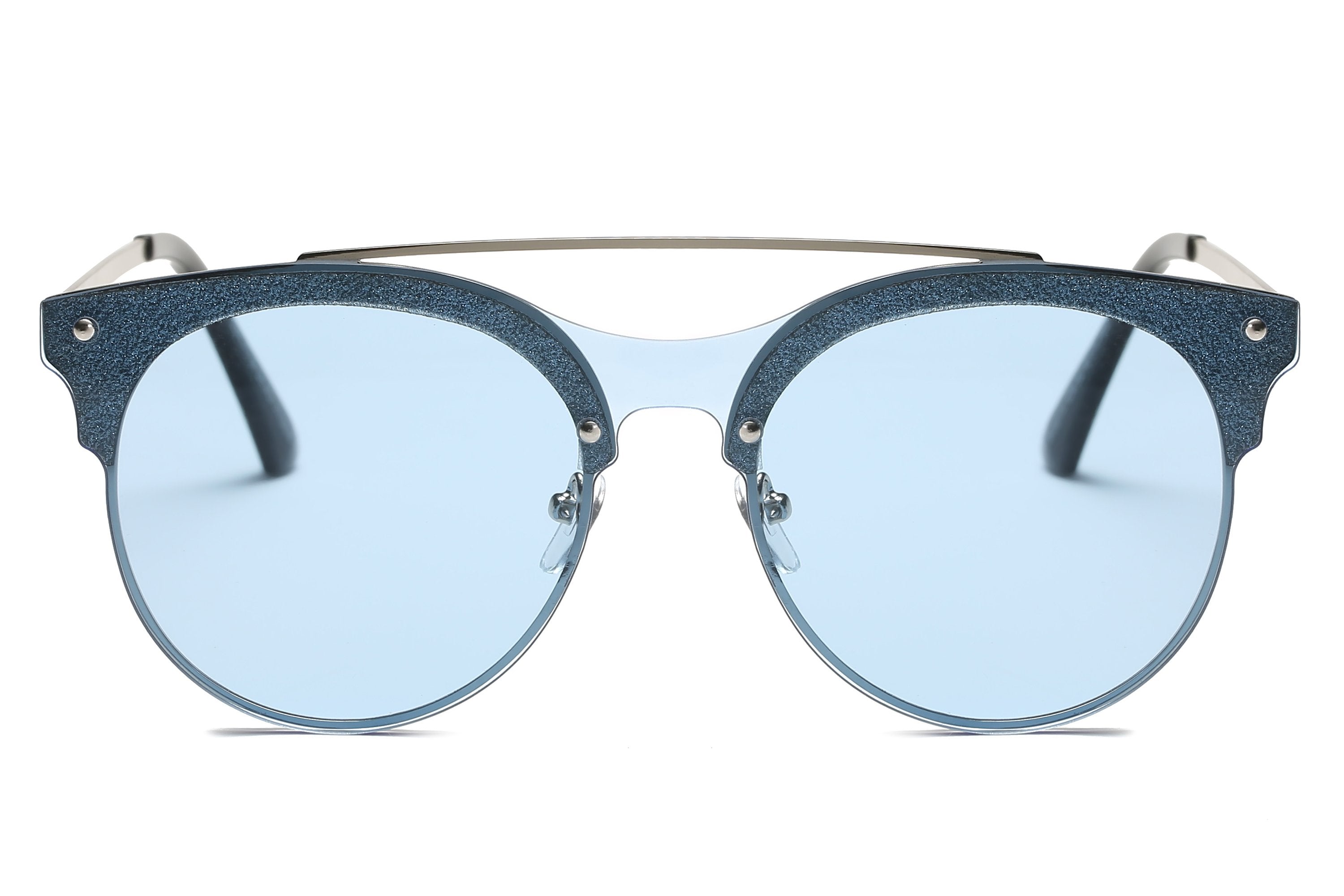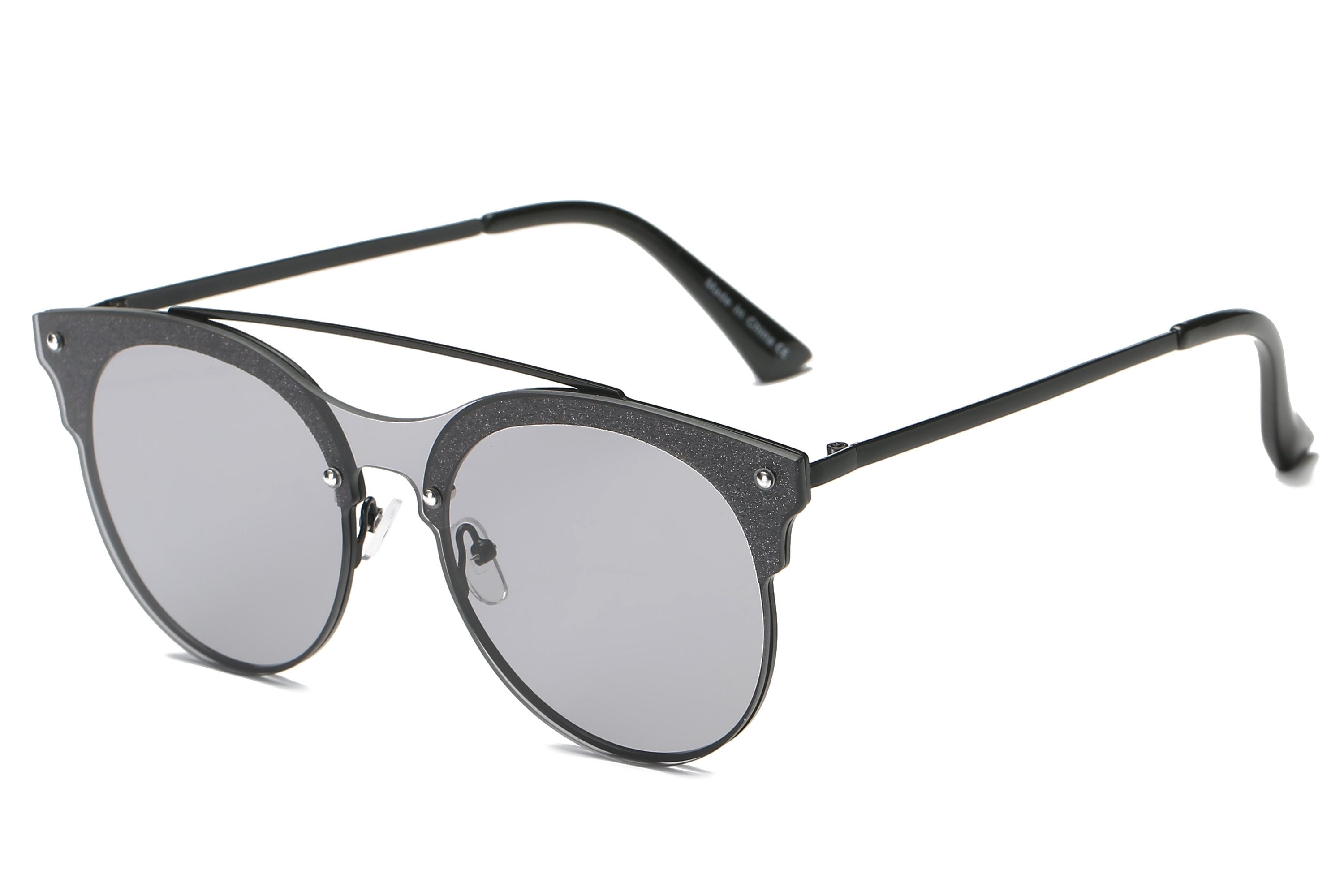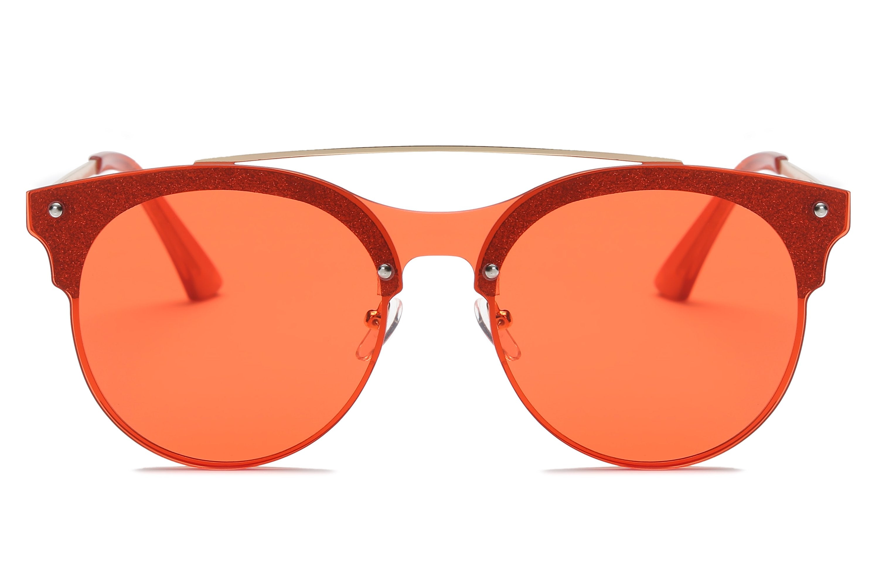 Women Brow-Bar Fashion Round Tinted Lens Cat Eye UV Protection Sunglasses