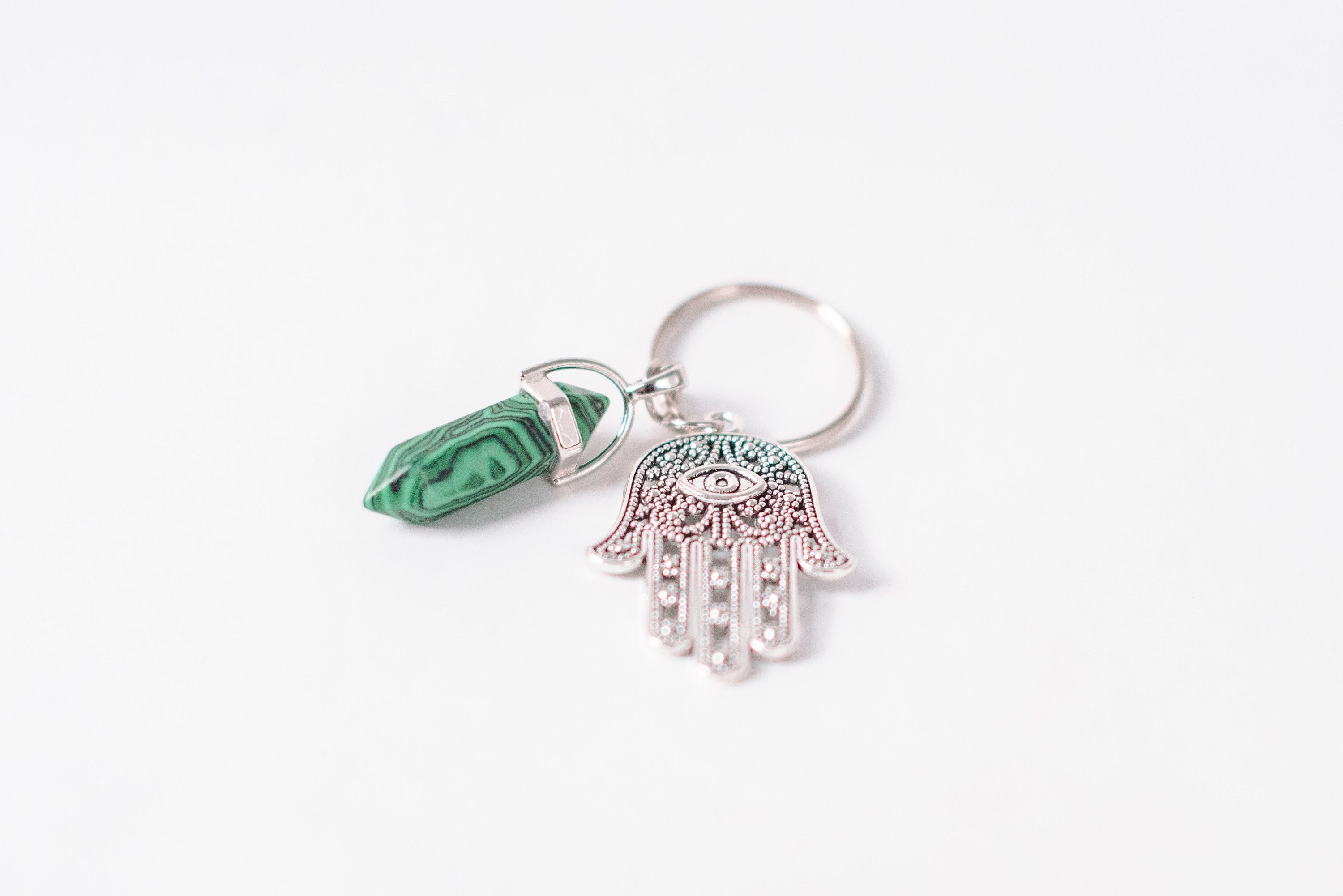 Hamsa & Malachite Key chain/Key ring