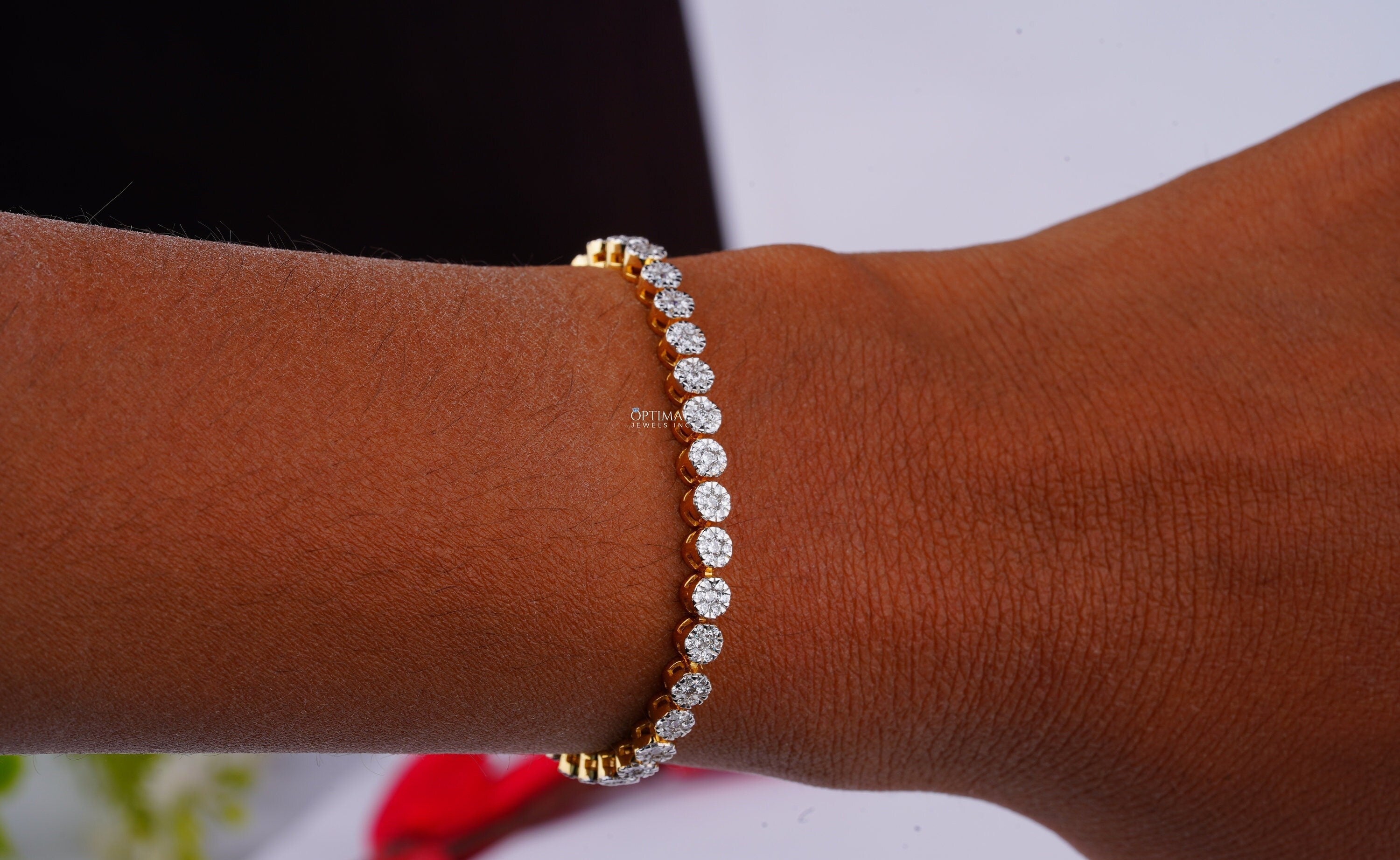 Unique Round Cut Lab Grown Diamond Tennis Bracelet, 8.00 CTW Diamond Yellow Gold Handmade Design, Perfect Anniversary Gift for Men and Women
