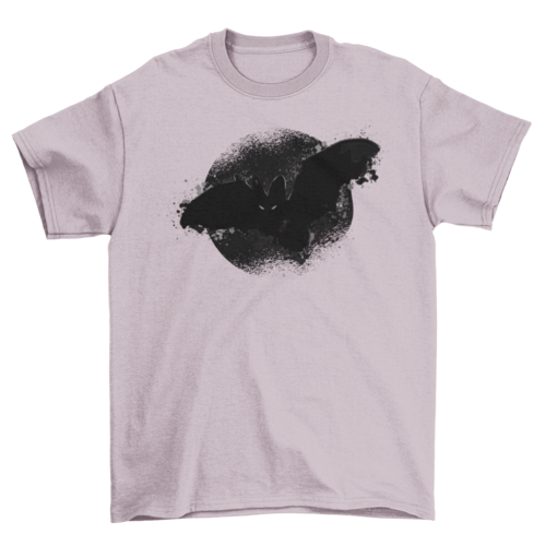 Cool Halloween theme t-shirt design featuring grungy watercolor paint flying bat with paint splashes around.