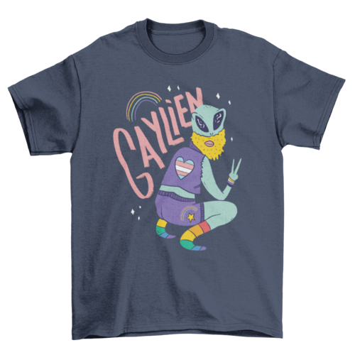 T-shirt design featuring a gay alien with the text GAYLIEN. Can be used on t-shirts hoodies mugs posters and any other merchandise.