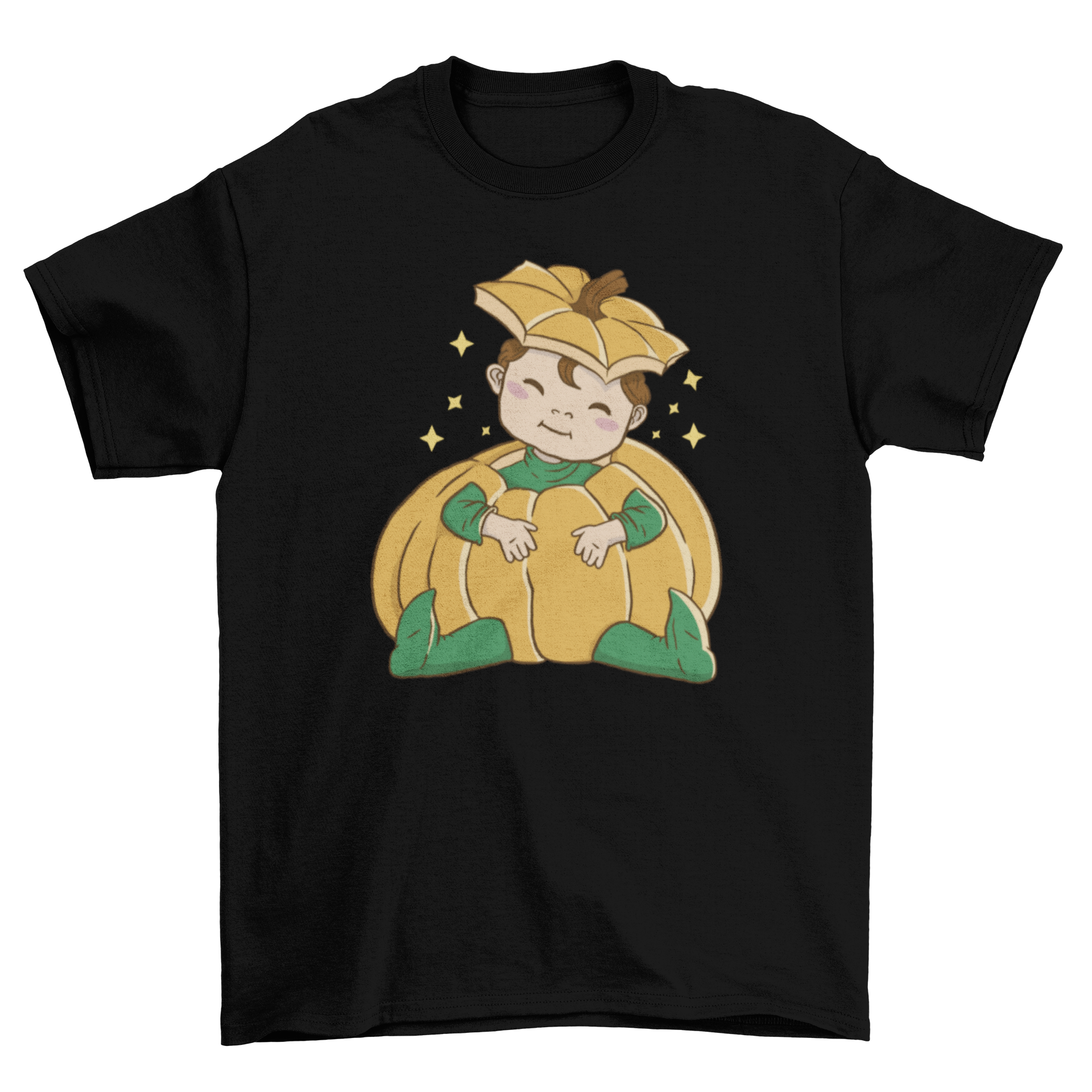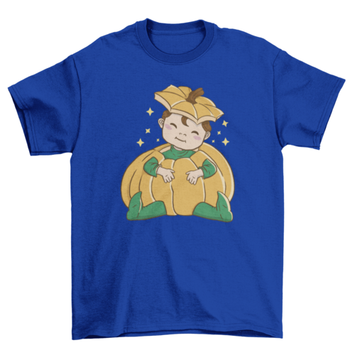 Lovely Halloween t-shirt design of a baby in a pumpkin costume.